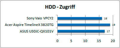 Sah das Y21 gegenüber U30 und Timeline X hinsichtlich der Rechenleistung kaum Land, kann sich das Storage-System besser verkaufen. Dank einer flotten HDD kann es sich hier sogar an die Spitze setzen.