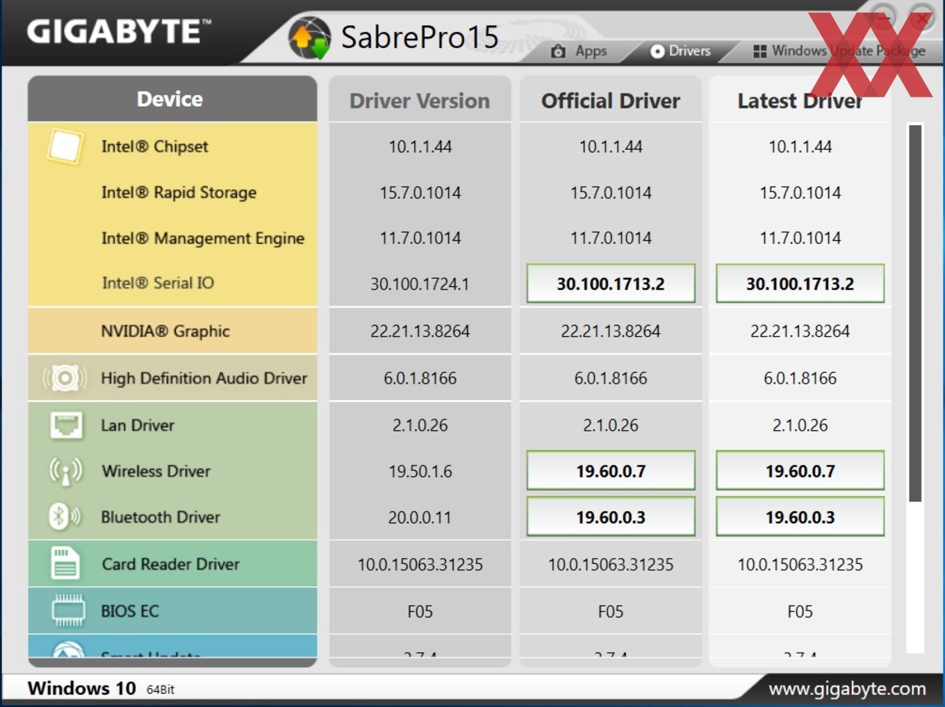 Ebenfalls wieder mit am Start ist ein Tool, womit sich Treiber und Programme mit nur wenigen Klicks automatisch auf den neusten Stand bringen lassen. Natürlich darf auch das Tool zur Anfertigung eines Recovery-Laufwerks nicht fehlen. Ansonsten hält sich Gigabyte, was die Installation zusätzlicher Software-Programme anbelangt, gewohnt zurück. Auf unnötige Demoversionen wie beispielsweise zu Microsoft Office 365 oder die eines Virenscanners wird verzichtet. Sehr lobenswert!