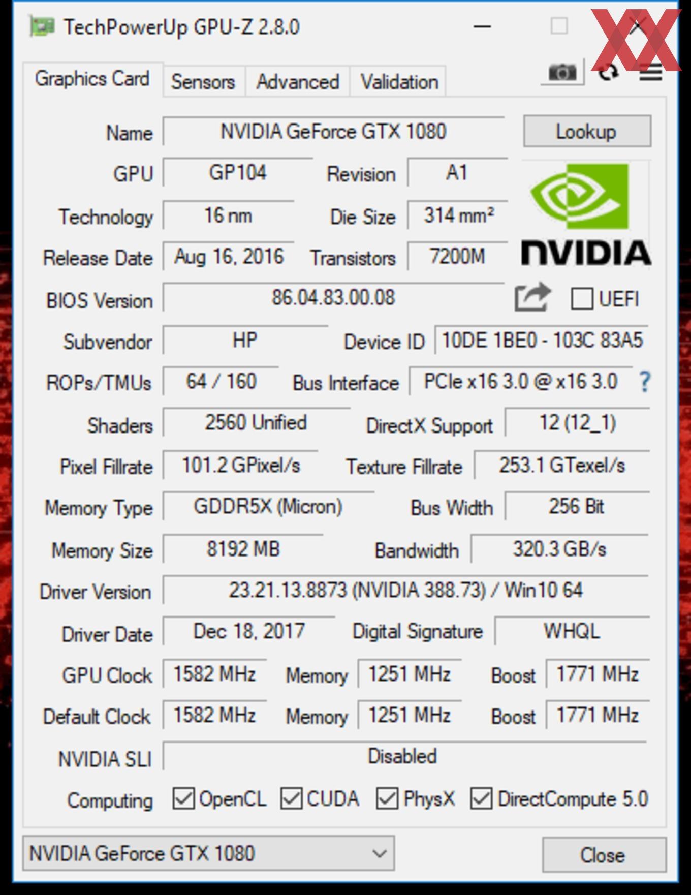 Auch bei der Grafikkarte hat HP bei seinem Omen X hoch gegriffen und den bislang schnellsten Grafikchip verbaut. Zum Einsatz kommt die NVIDIA GeForce GTX 1080, die mit ihren 7,2 Milliarden Transistoren starken GP104-Chip fast 1:1 dem Desktop-Gegenstück entspricht und wie die meisten Pascal-Grafikkarten im 16-nm-Verfahren bei TSMC gefertigt wird. Insgesamt stehen ihr 2.560 Shadereinheiten zur Verfügung, die sich wie gewohnt aus vier Graphics Processing Clustern (GPC) mit jeweils fünf Streaming Multiprozessoren (SMM) zusammensetzen, die wiederum aus 128 ALUs bestehen. An jeden Shadercluster sind zudem acht Textureinheiten angeschlossen, womit der NVIDIA GeForce GTX 1080 auch im Notebook 160 TMUs zur Seite stehen.