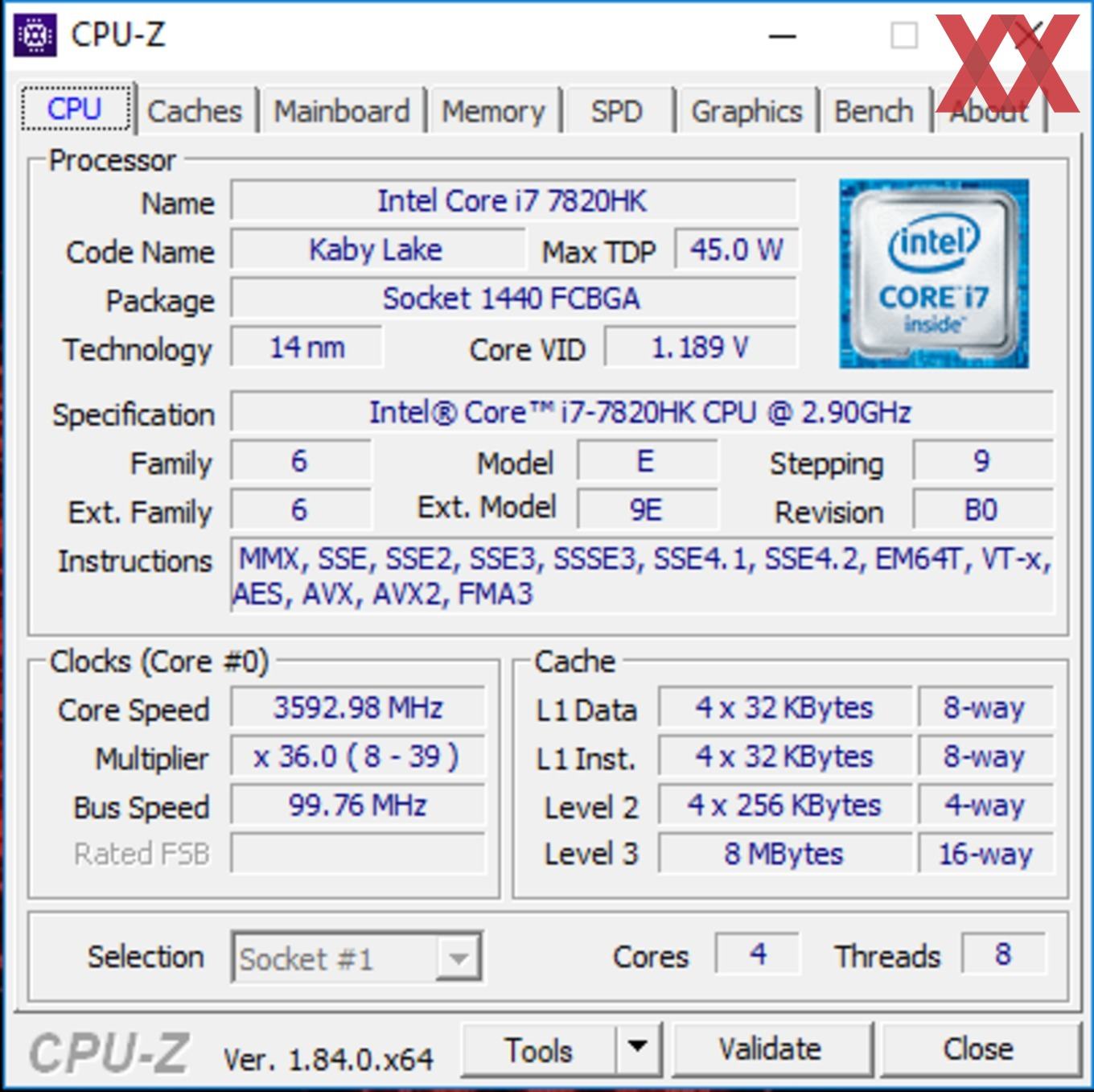 Doch schon ab Werk hat der Intel Core i7-7820HK einiges zu bieten und ist leicht schneller als sein kleines Schwestermodell. Er bringt es auf einen Basis- und Turbo-Takt von 2,9 bis 3,9 GHz und setzt damit einen jeweils 100 MHz höheren Takt obendrauf als das HQ-Modell. Wie sein kleines Schwestermodell entspringt er noch der Kaby-Lake-Architektur und wird im 14-nm-Verfahren gefertigt.