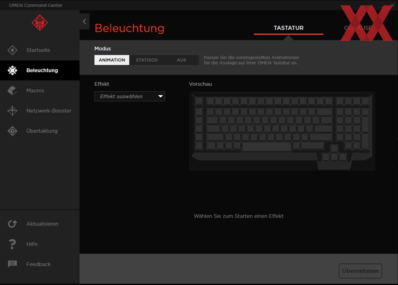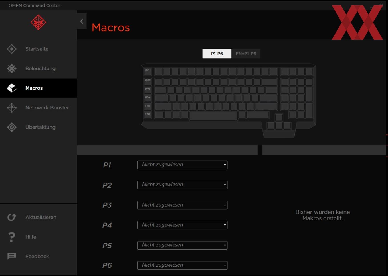 Bereits ab Werk hat HP einiges an Software auf seinem Omen X vorinstalliert. Ein Highlight hier ist vor allem das Omen Command Center. Darüber lassen sich zum einen wichtige Systemparameter wie CPU-, GPU- und Speicherauslastung auslesen, zum anderen aber auch deren Temperaturen anzeigen. Die Beleuchtung von Tastatur und Deckel wird hier ebenso eingestellt, wie die Programmierung der zusätzlichen Makrotasten auf der linken Seite des Keyboards. Da HP einen Intel Core i7-7820HK mit offenem Multiplikator vorbaut, ist eine Übertaktung ebenso möglich. Als Grundlage dient hier das Intel-eigene XTU-Tool, das nicht nur ein einfaches Overclocking per Schiebregler möglich macht, sondern auch Einfluss auf die Spannungen und den Multiplikator nehmen kann.