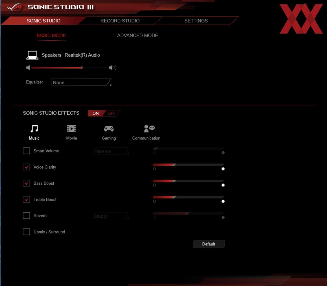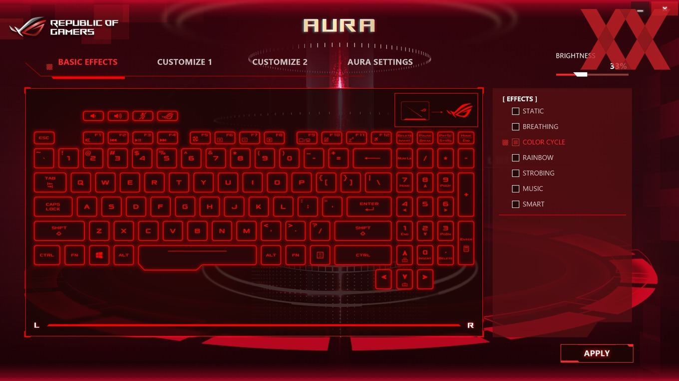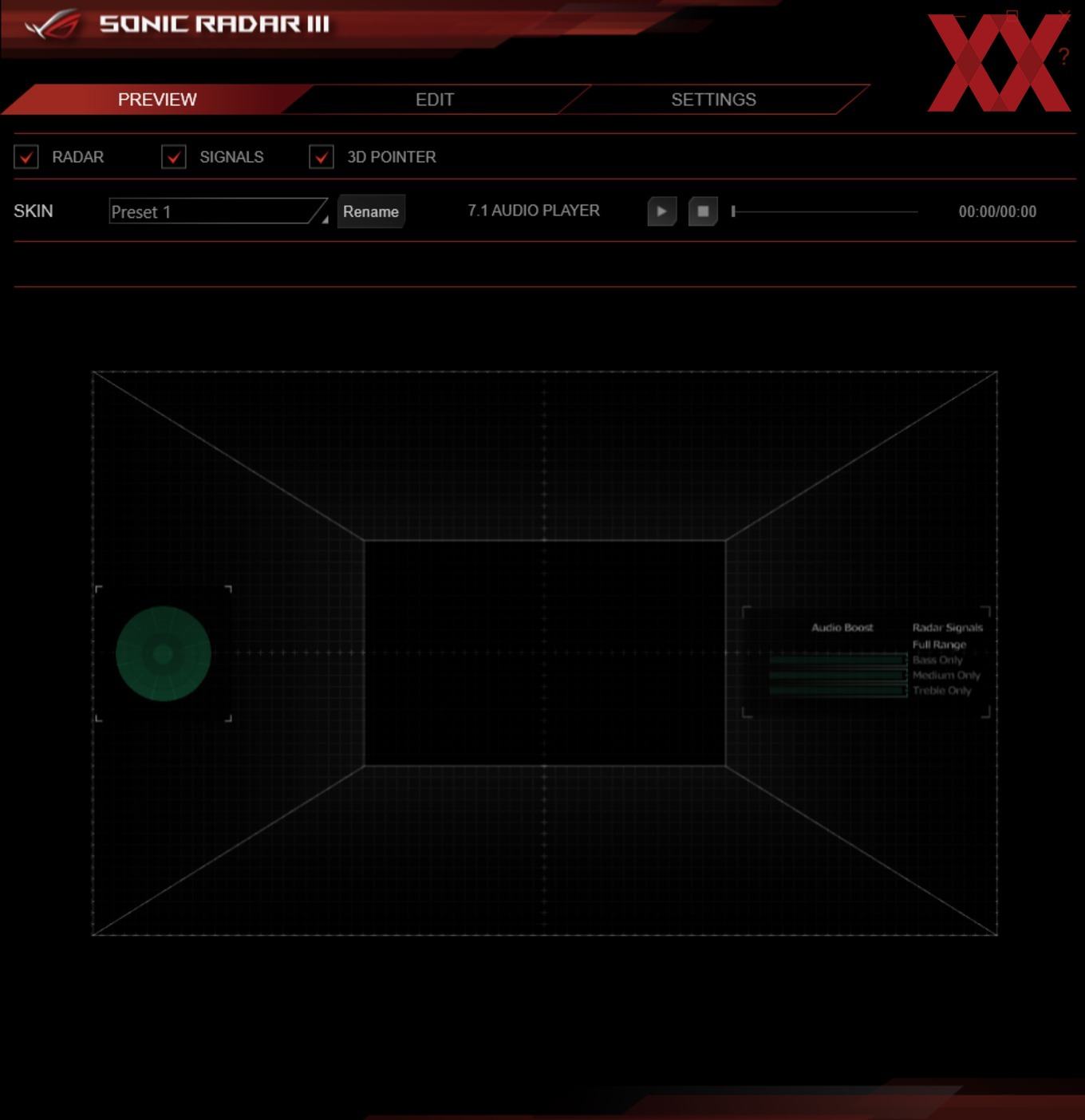 Der RGB-Hintergrundbeleuchtung der Tastatur, die sich in vier verschiedene Zonen einteilen lässt, wird über die Aura-Software konfiguriert. Hier ist neben der Farbauswahl die Einstellung des Beleuchtungs-Effekts möglich. Über GameVisual kann das Farbprofil des Monitors angepasst werden, im Sonic Studio III werden die integrierten Lautsprecher konfiguriert. Ebenfalls wieder mit von der Partie ist das Sonic Radar, das bei der Ortung von Gegnern helfen kann.