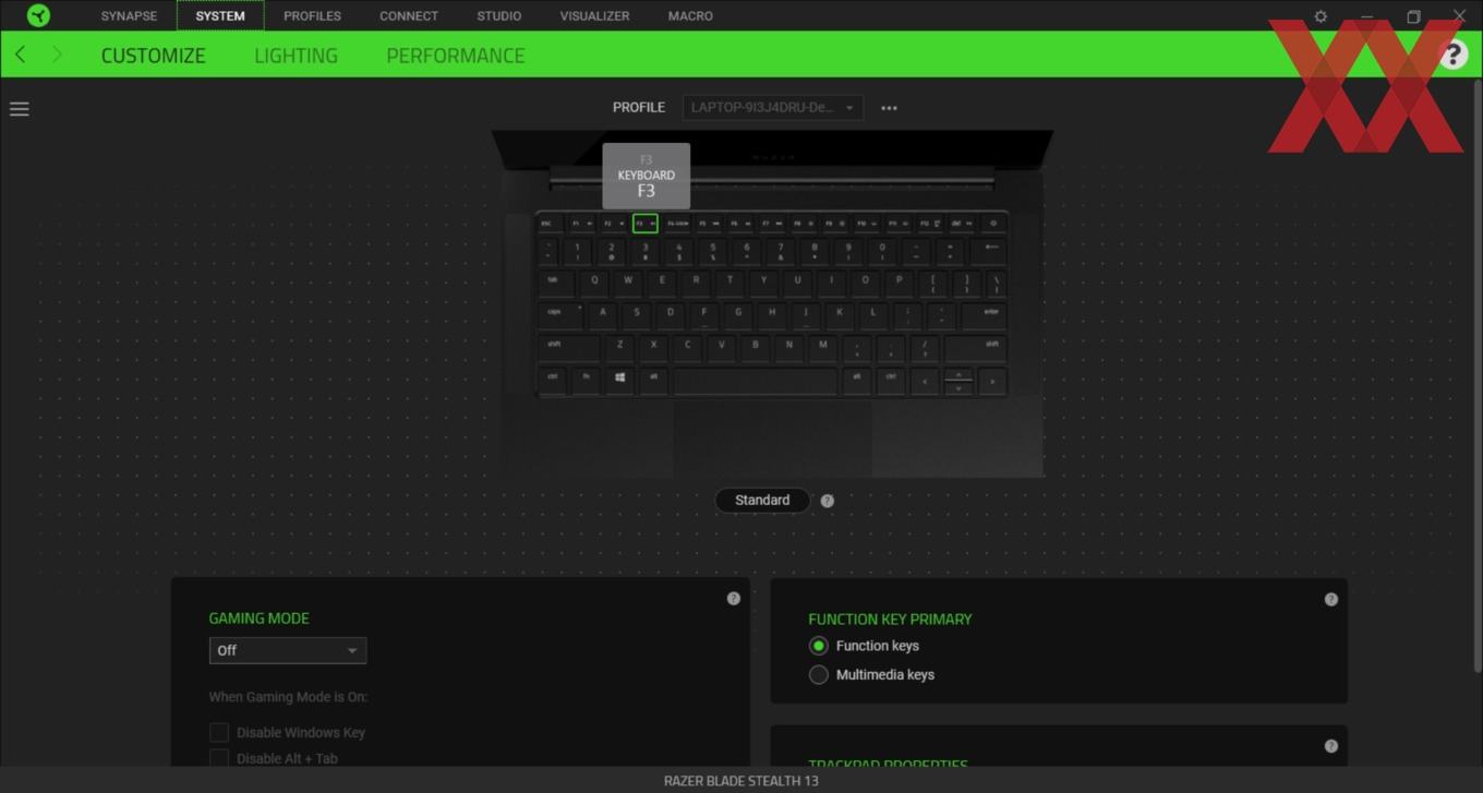 Auch bei seinem Blade Stealth setzt Razer auf eine insgesamt sehr saubere Installation von Windows 10 Home. Einzig eine Demoversion von Microsoft Office 365 ist vorinstalliert. Dafür gibt es eine Reihe nützlicher Tools, wie beispielsweise das Razer-Synapse-Tool, bei dem man entgegen der Vergangenheit nicht mehr einen Razer-Account besitzen muss. Über das Tool lässt sich unter anderem die RGB-Hintergrundbeleuchtung der Tastatur einstellen oder deren Makro-Funktion ausnutzen. Außerdem können wichtige Systemparameter ausgelesen oder Einfluss auf den Performance-Modus genommen werden.