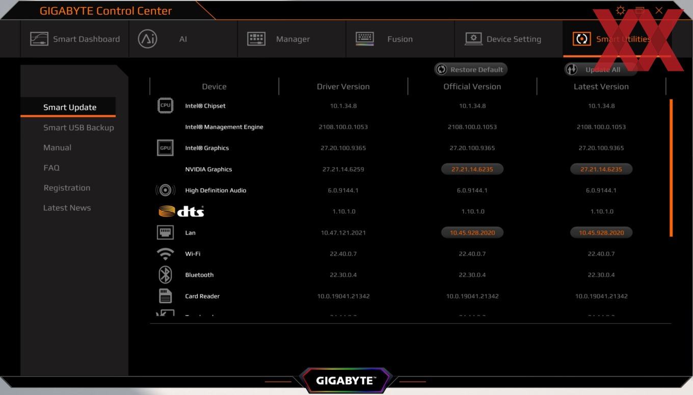 Für die anderen Komponenten wie das WiFi 6 oder die LAN-Schnittstelle sind jeweils separate Tools installiert, genau wie für die Erstellung eines Wiederherstellungs-Mediums, wobei dieses noch immer in chinesischen Schriftzeichen dargestellt und nicht übersetzt wurde. Gigabyte setzt im Übrigen auf Windows 10 Pro, eine Demoversion von Office 365 ist ebenfalls bereits vorinstalliert, die 30 Tage im vollen Umfang getestet werden kann und danach eine gültige Lizenz erfordert.