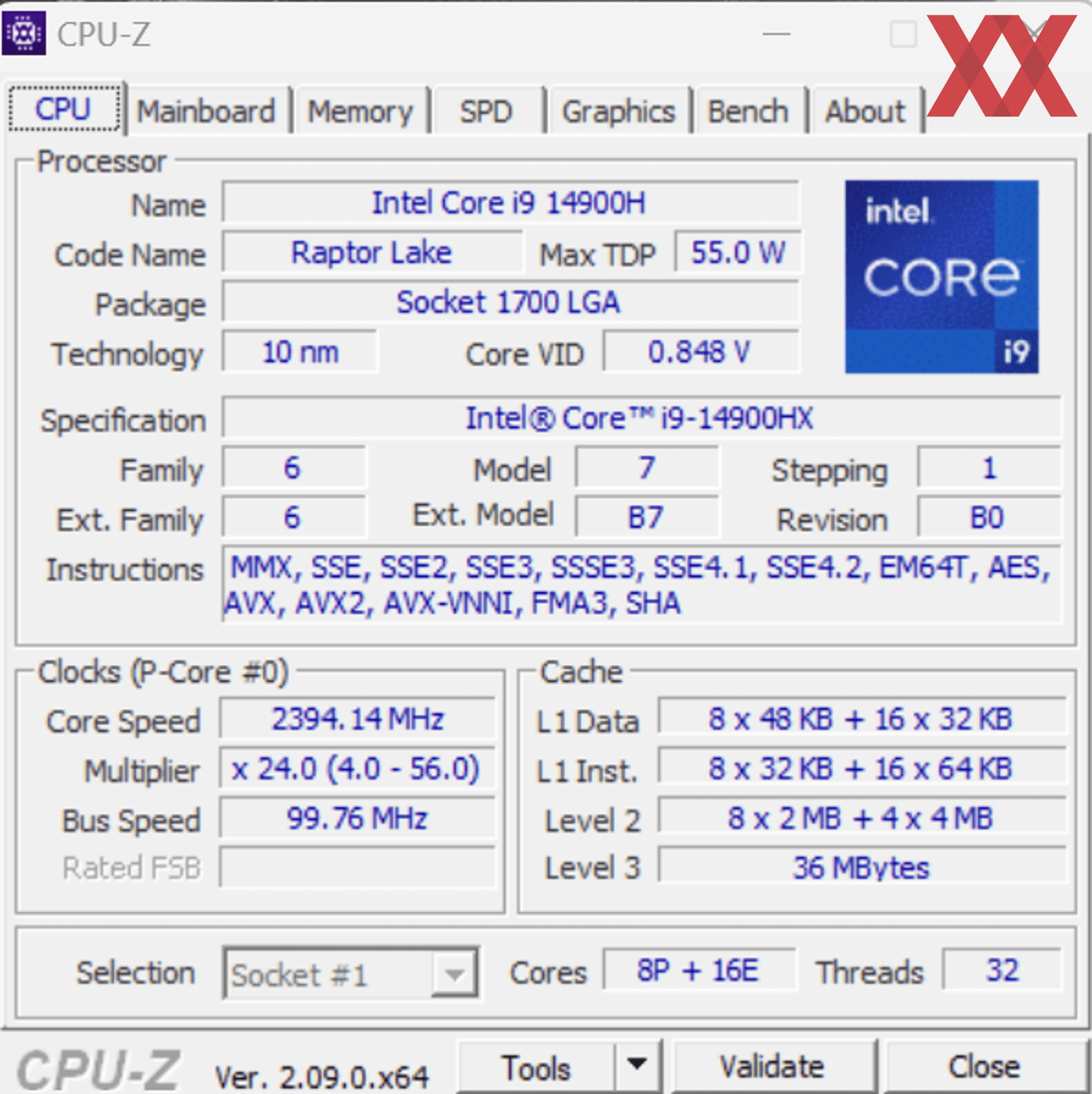 Herzstück unseres Gigabyte AORUS 16X ist ein Intel Core i9-14900HX. Er wurde zu Beginn des Jahres gemeinsam mit dem 16-Zöller im Rahmen der CES 2024 ins Rennen geschickt und zählt mitunter zu den schnellsten Notebook-Prozessoren am Markt. Er setzt allerdings noch auf das alte Namenschema, weil die Änderungen gegenüber der 13. Core-Generation sich eher in Grenzen halten. Der Schwenk auf die 14. Core-Generation ist nur ein kleiner Refresh.