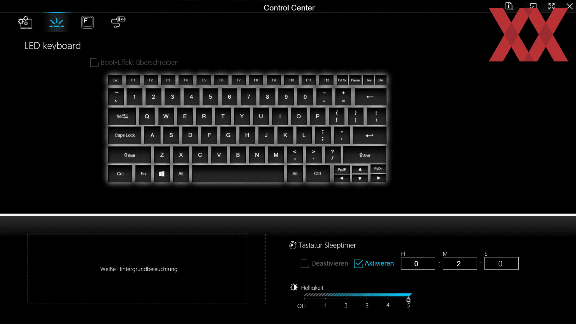Weiterhin können die Leistungsmodi angepasst oder die Hintergrundbeleuchtung der Tastatur in 15 verschiedenen Farben eingestellt werden. Eine Makro-Funktion für die Tastatur bietet das Tool ebenso wie interessante Angaben zum Akku.