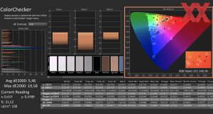 Wie versprochen, wird der sRGB-Farbraum vollständig abgedeckt, im Test wurde er sogar mit 101 % marginal übertroffen. Die Delta-E-Werte sind mit 5,7 und 5,46 für ein IPS-Panel recht hoch. Die Bildwiederholrate erreicht 60 Hz, die von uns gemessene Reaktionsgeschwindigkeit liegt bei 7,91 ms.