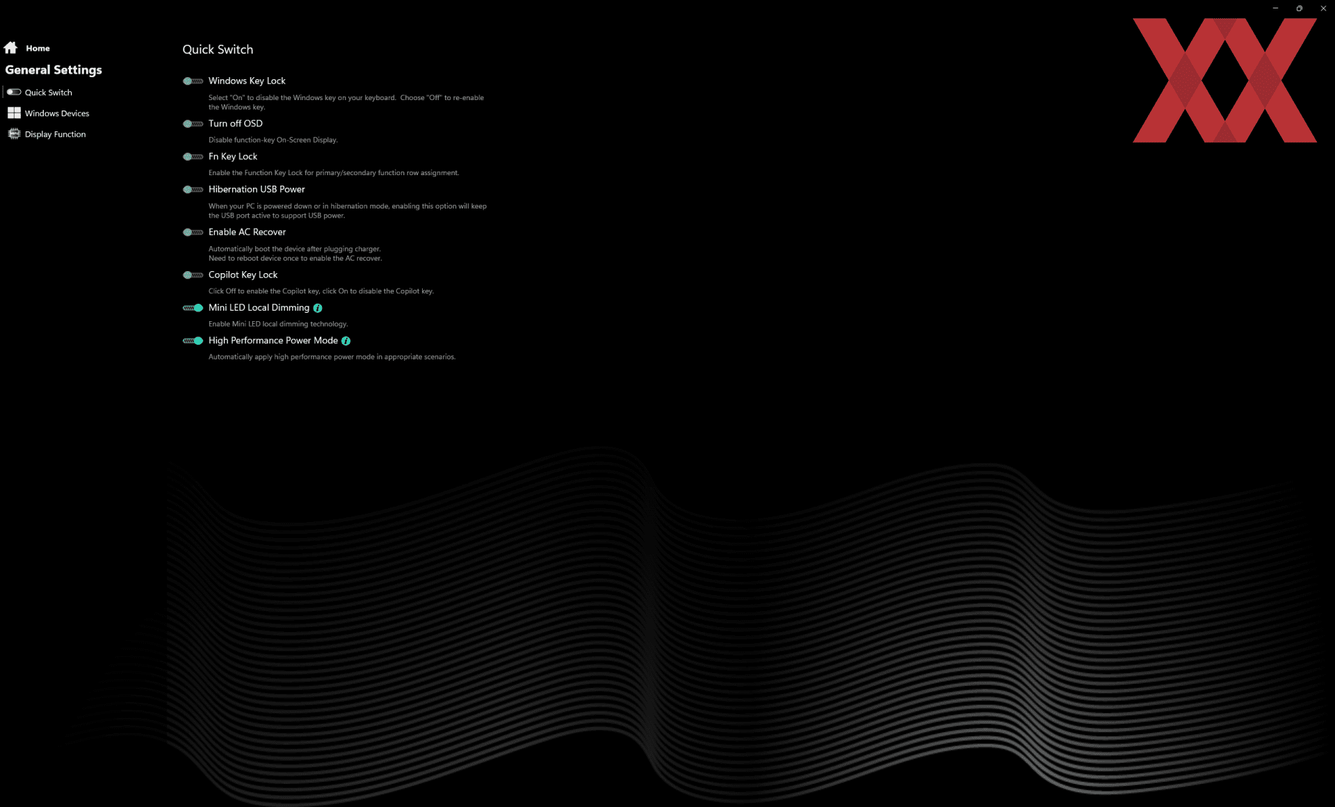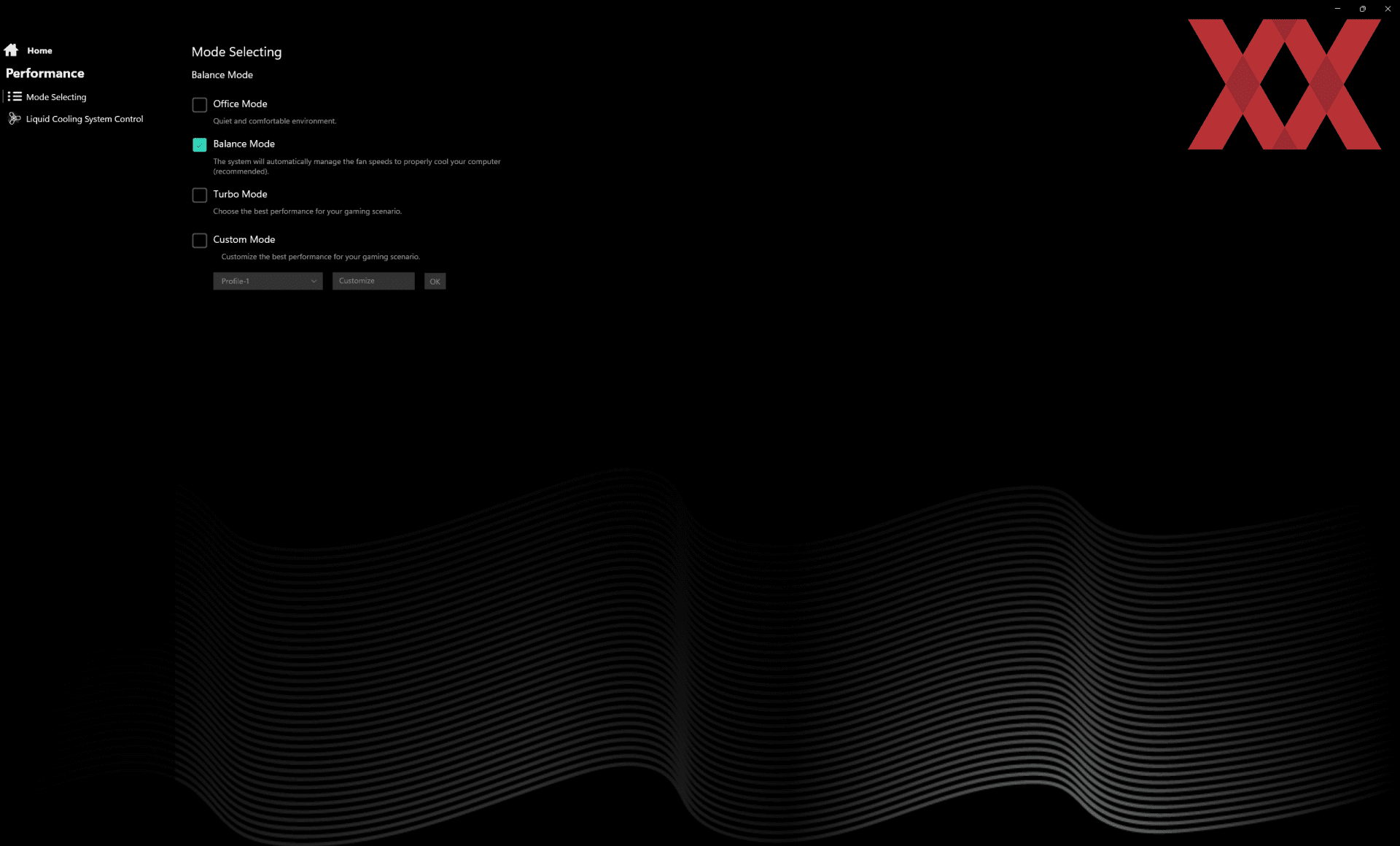 Über den Leistungs-Reiter kann zum einen aus vorgefertigten Profilen ausgewählt, zum anderen können diese händisch angepasst werden. Aber auch einfache Dinge – wie beispielsweise eine Abschaltung der Windows-Taste oder der FN-Funktion – können eingestellt werden. Genau wie die Hintergrundbeleuchtung der Tastatur. Das Control Center ist ein mächtiges Tool und zählt klar mit zu den umfangreichsten am Markt. Außerdem ist es vorbereitet für die externe Wasserkühlung und macht deren Konfiguration per Bluetooth möglich.
