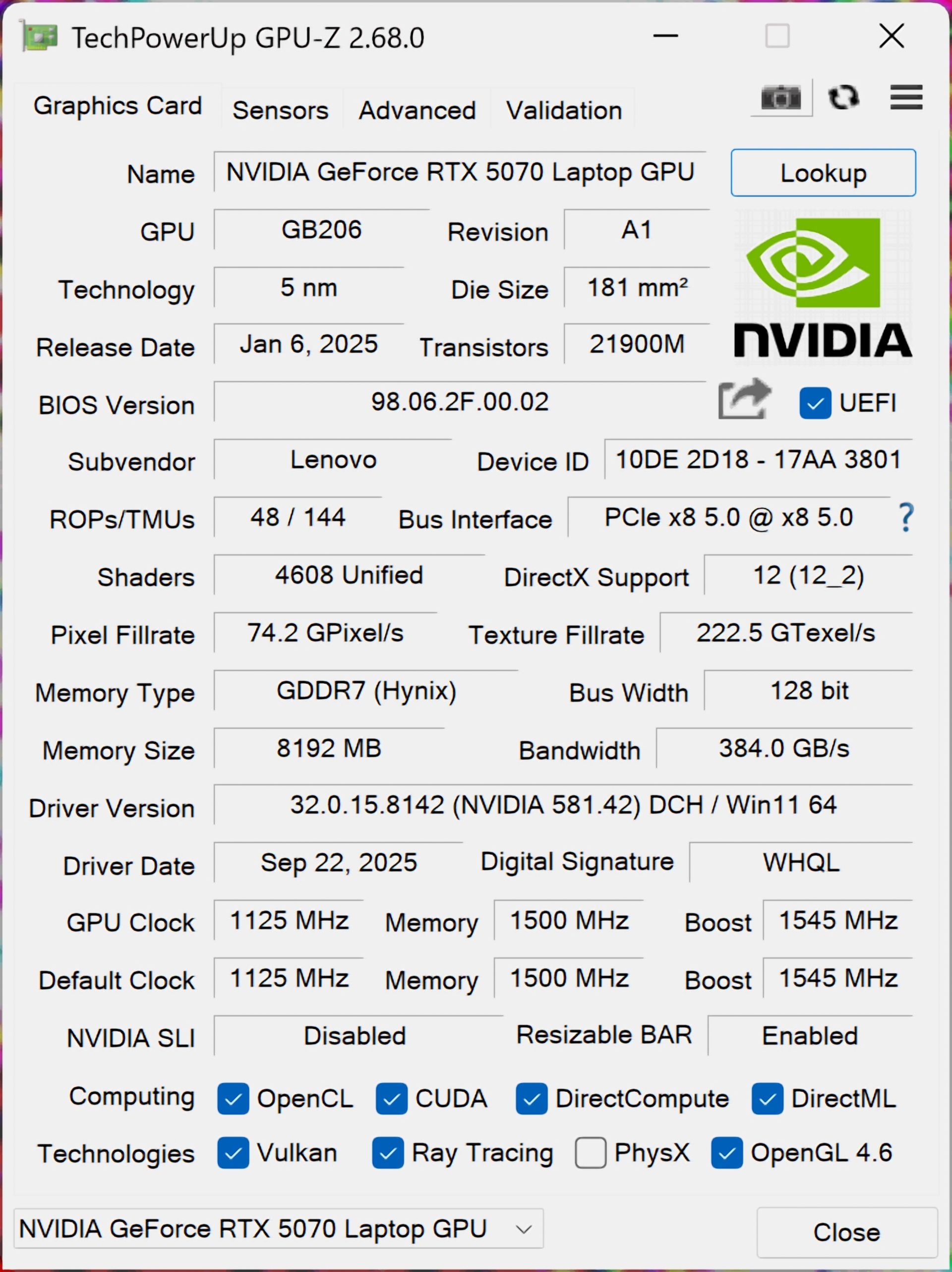 Grafikkarte: | NVIDIA GeForce RTX 5070 Laptop |
