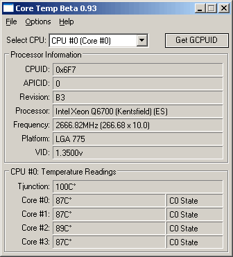 Die Temperaturangaben von Core Temp sind falsch: "Tjunction" ist nur eine fiktive Angabe.