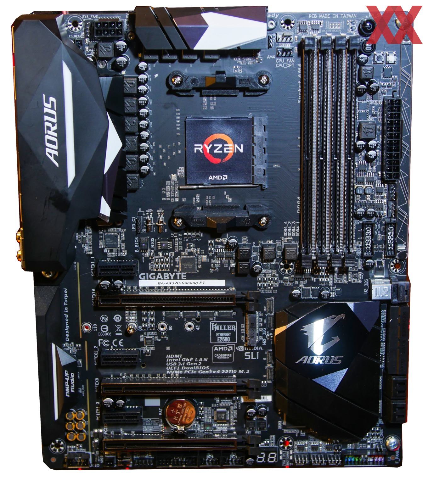 Einzig die RYZEN-Prozessoren bieten 16 PCI-Express-3.0-Lanes. Im Falle eines Multi-GPU-Systems auf einem X370-Mainboards werden diese 16 Lanes auf zweimal acht aufgeteilt. Über den Prozessor unterstützt werden Schnittstellen wie NVMe mit zwei oder vier Lanes, sowie 2x SATA. Entscheidet sich der Hersteller für eine Anbindung der M.2-SSD über nur zwei Lanes, können die beiden übriggebliebenen PCI-Express-Lanes anderweitig verwendet werden. Ebenfalls direkt über den Prozessor bereitgestellt werden 4x USB 3.0.