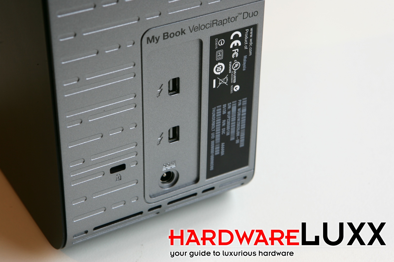 Die Western Digital VelociRaptor Duo mit Thunderbolt nur mit 2 TB zu haben. Der Preis liegt bei 850 Euro und damit auf Niveau des Promise Pegasus J4. Durch den Einsatz dieser Festplattenserie im 2,5-Zoll-Format verspricht sich WD auch in Zeiten von SSDs noch eine möglichst hohe Datenübertragungsrate, bei gleichzeitig hoher Datendichte bzw. Gesamtkapazität. Im Lieferumfang befinden sich ein Thunderbolt-Kabel, der Netzteilstecker sowie eine Schnellinstallationsanleitung.