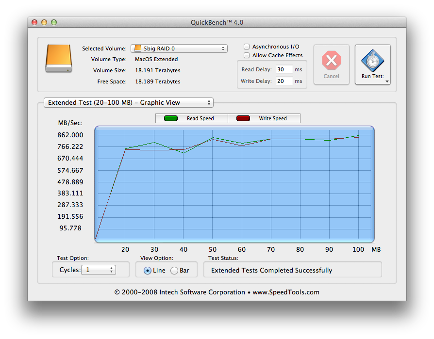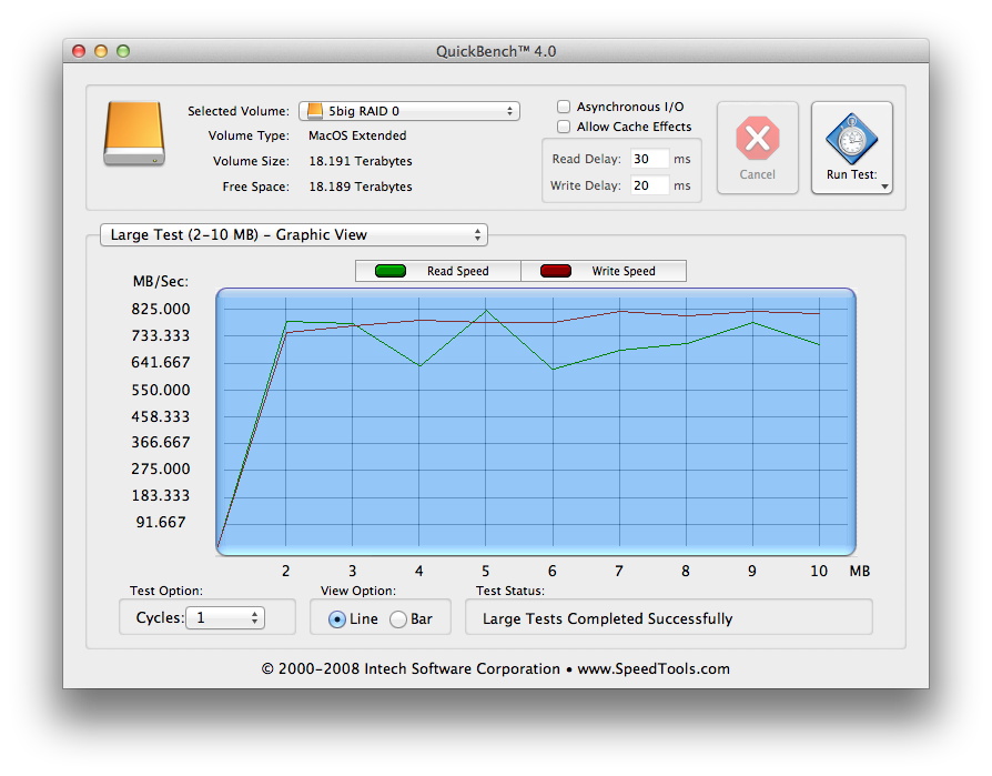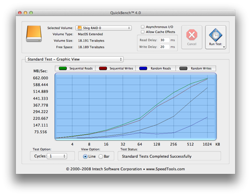 TEST Test Thunderbolt-Massenspeicher von LaCie, Promise und WD - Benchmarks: LaCie 5big im QuickBench Von Andreas Schilling Donnerstag, 07.03.2013 um 16:06 Uhr Seite 6: Benchmarks: LaCie 5big im QuickBench Seite 6 von 9 Seite 1: Test: Thunderbolt-Massenspeicher von LaCie, Promise und WD Seite 2: LaCie 5big Seite 3: Promise Pegasus J4 Seite 4: Western Digital VelociRaptor Duo Seite 5: Benchmarks: Aja System Test Seite 6: Benchmarks: LaCie 5big im QuickBench Seite 7: Benchmarks: Promise Pegasus J4 im QuickBench Seite 8: Benchmarks: Western Digital VelociRaptor Duo im QuickBench Seite 9: Fazit 1 WerbungLaCie 5big im RAID 0: LaCie 5big im RAID 1: Seite 5: Benchmarks: Aja System Test Seite 7: Benchmarks: Promise Pegasus J4 im QuickBench Quellen und weitere Links Unterforum: StorageLaCieWestern Digital Werbung KOMMENTARE (1)