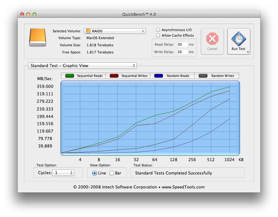 TEST Test Thunderbolt-Massenspeicher von LaCie, Promise und WD - Benchmarks: Western Digital VelociRaptor Duo im QuickBench Von Andreas Schilling Donnerstag, 07.03.2013 um 16:06 Uhr Seite 8: Benchmarks: Western Digital VelociRaptor Duo im QuickBench Seite 8 von 9 Seite 1: Test: Thunderbolt-Massenspeicher von LaCie, Promise und WD Seite 2: LaCie 5big Seite 3: Promise Pegasus J4 Seite 4: Western Digital VelociRaptor Duo Seite 5: Benchmarks: Aja System Test Seite 6: Benchmarks: LaCie 5big im QuickBench Seite 7: Benchmarks: Promise Pegasus J4 im QuickBench Seite 8: Benchmarks: Western Digital VelociRaptor Duo im QuickBench Seite 9: Fazit 1 WerbungWestern Digital VelociRaptor Duo im RAID 0: Western Digital VelociRaptor Duo im RAID 1: Seite 7: Benchmarks: Promise Pegasus J4 im QuickBench Seite 9: Fazit Quellen und weitere Links Unterforum: StorageLaCieWestern Digital Werbung KOMMENTARE (1)