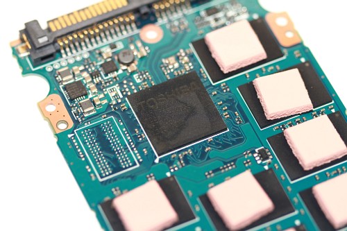 Ebenfalls interessant ist der Controller, auf dem zwar prominent der Toshiba-Schriftzug zu sehen ist, direkt darunter findet man jedoch auch einen Marvell-Schriftzug. Die komplette Bezeichnung lautet TC58NC5HA9GST, ein Rückschluss auf einen der bekannten Marvell-Controller (9174 etc.) ist also nicht möglich. Wie genau die Arbeitsteilung beim Entwickeln des Controllers ausgesehen hat, ist uns nicht bekannt. Meistens läuft es darauf hinaus, dass die Hardware von Marvell kommt und der jeweilige Hersteller für die Firmware zuständig ist. Das ist auch in diesem Fall das wahrscheinlichste Szenario.