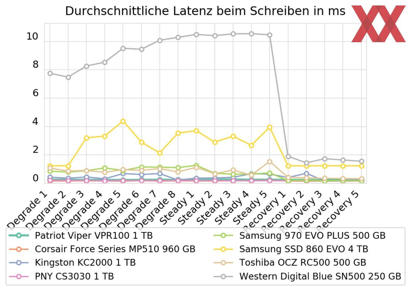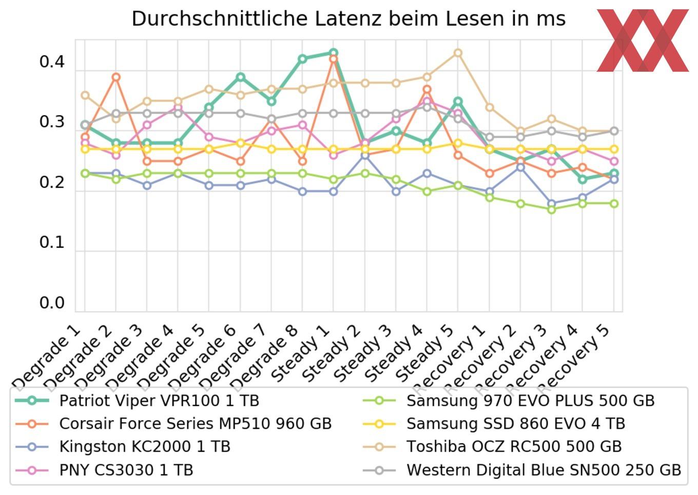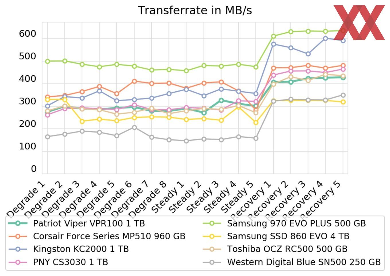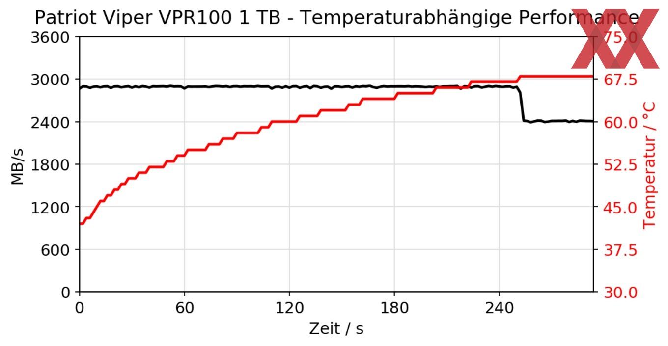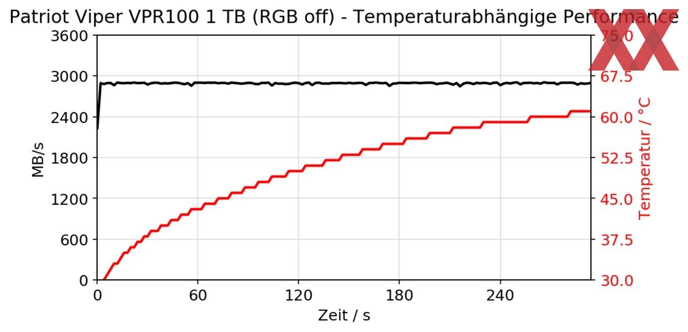 Da die Patriot Viper VPR100 als absolutes Key-Feature die RGB-Beleuchtung bewirbt, wurden alle Tests mit aktivierter Beleuchtung durchgeführt. Eine Drosselung konnten wir wie in der Detailansicht beschrieben nur mit einem geringen Impact nachweisen, dennoch sind bessere Einzelwerte bei entsprechender Nutzung denkbar.