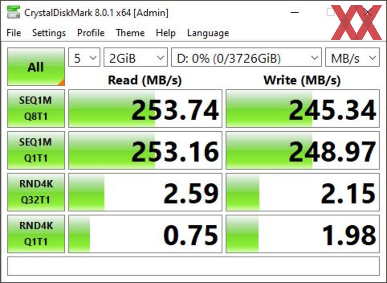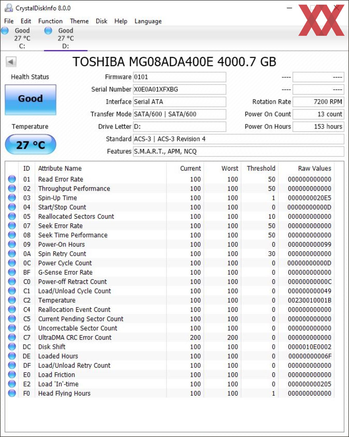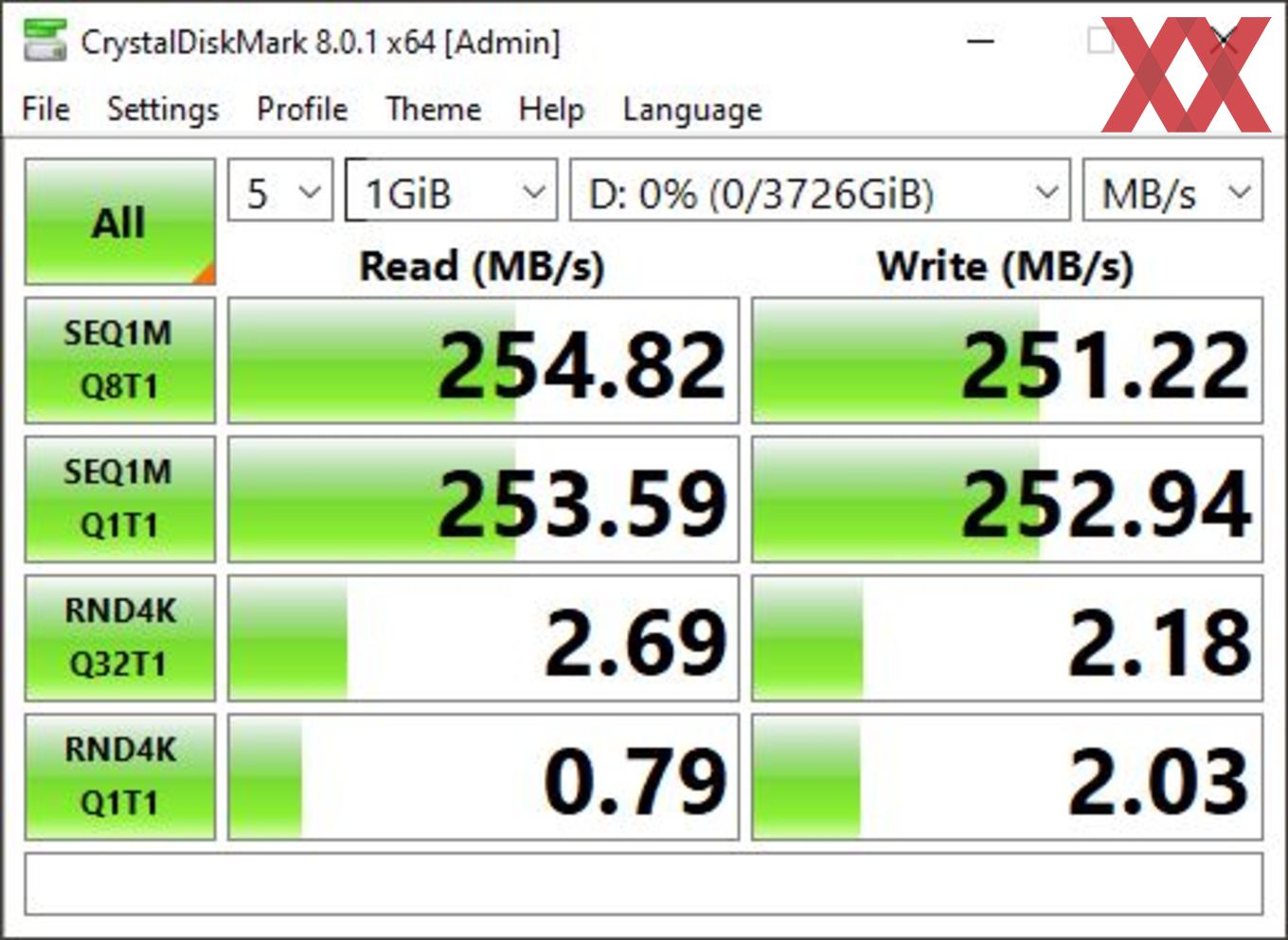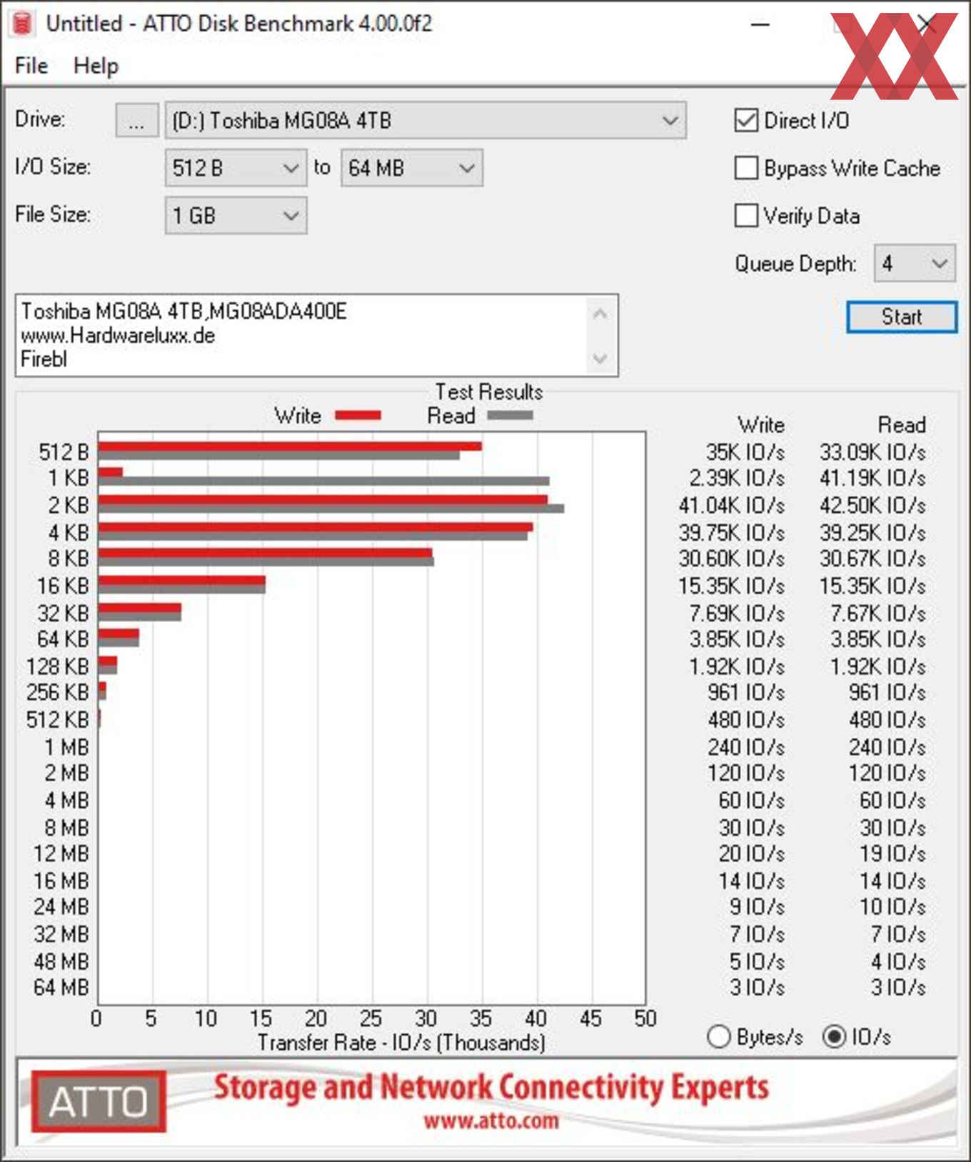Die MG08-D, 4 TB, zeigt eindrucksvoll, dass die Auffrischung ihrer Technologie erfolgreich und notwendig war. Verglichen mit den Ergebnissen der MG03ACA400 (ca. 165 MB/s) und der MG04ACA400E (Herstellerangabe 185 MB/s) ist die MG08-D als 4-TB-Enterprise-HDD-Produkt deutlich schneller geworden. In HD-Tune ist sie sogar die schnellste neue Luft-gefüllte Festplatte, vor der WD_BLACK Performance Desktop Hard Drive 6 TB in der Generation WD6003FZBX (ehemals Western Digital Black).
