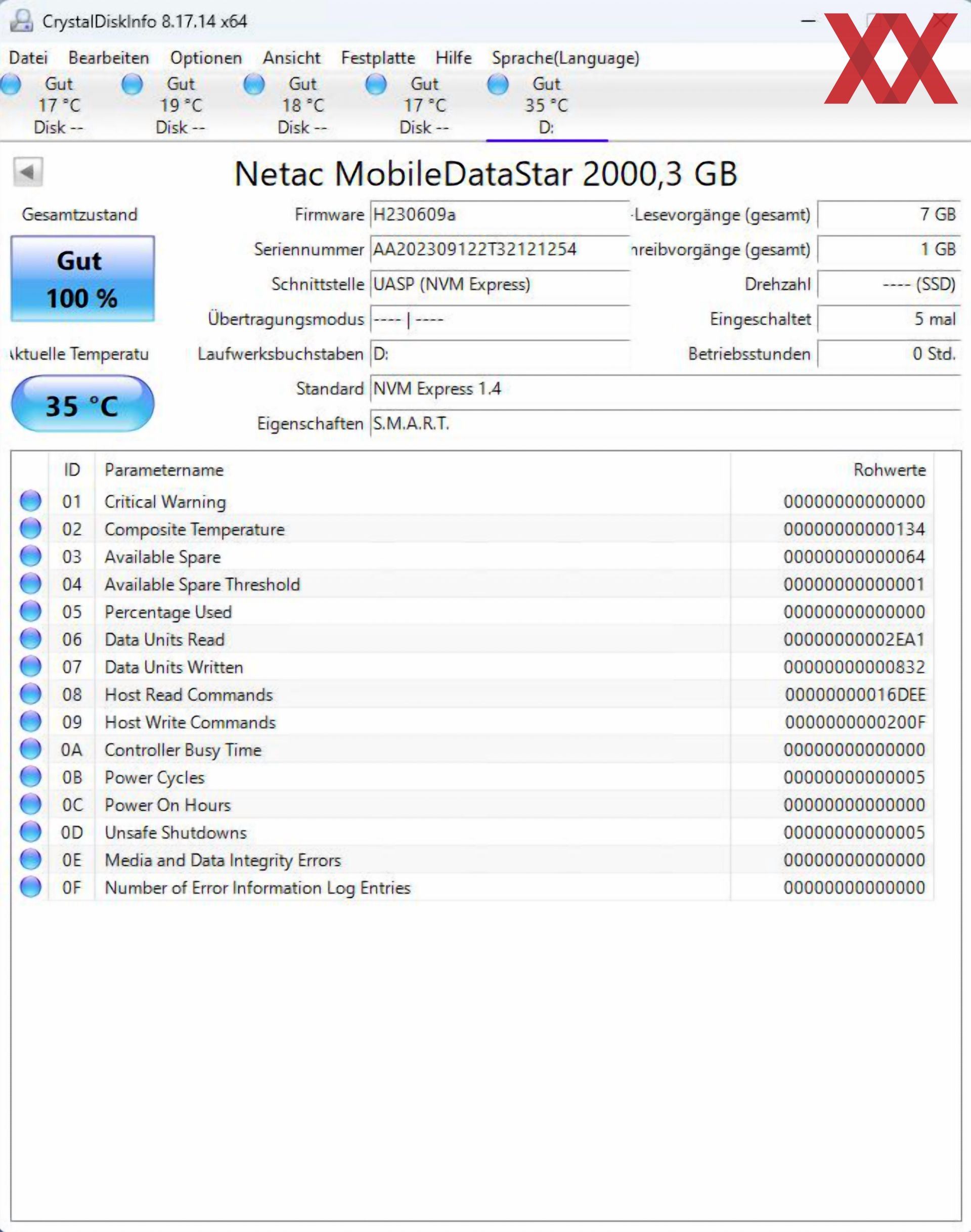 In CDI wird die Netac ZX10 mit dem Namen Netac MobileDataStar erkannt.