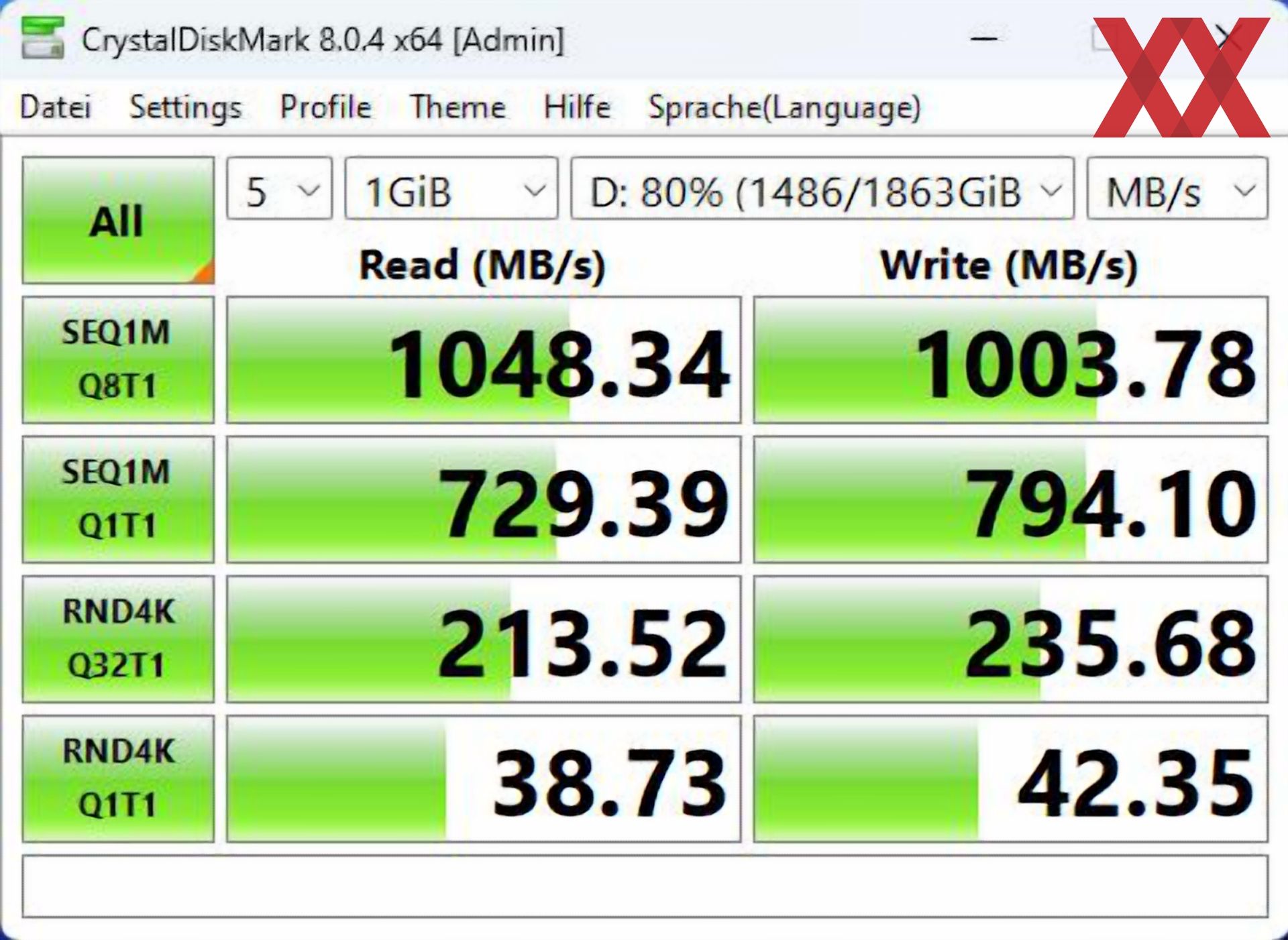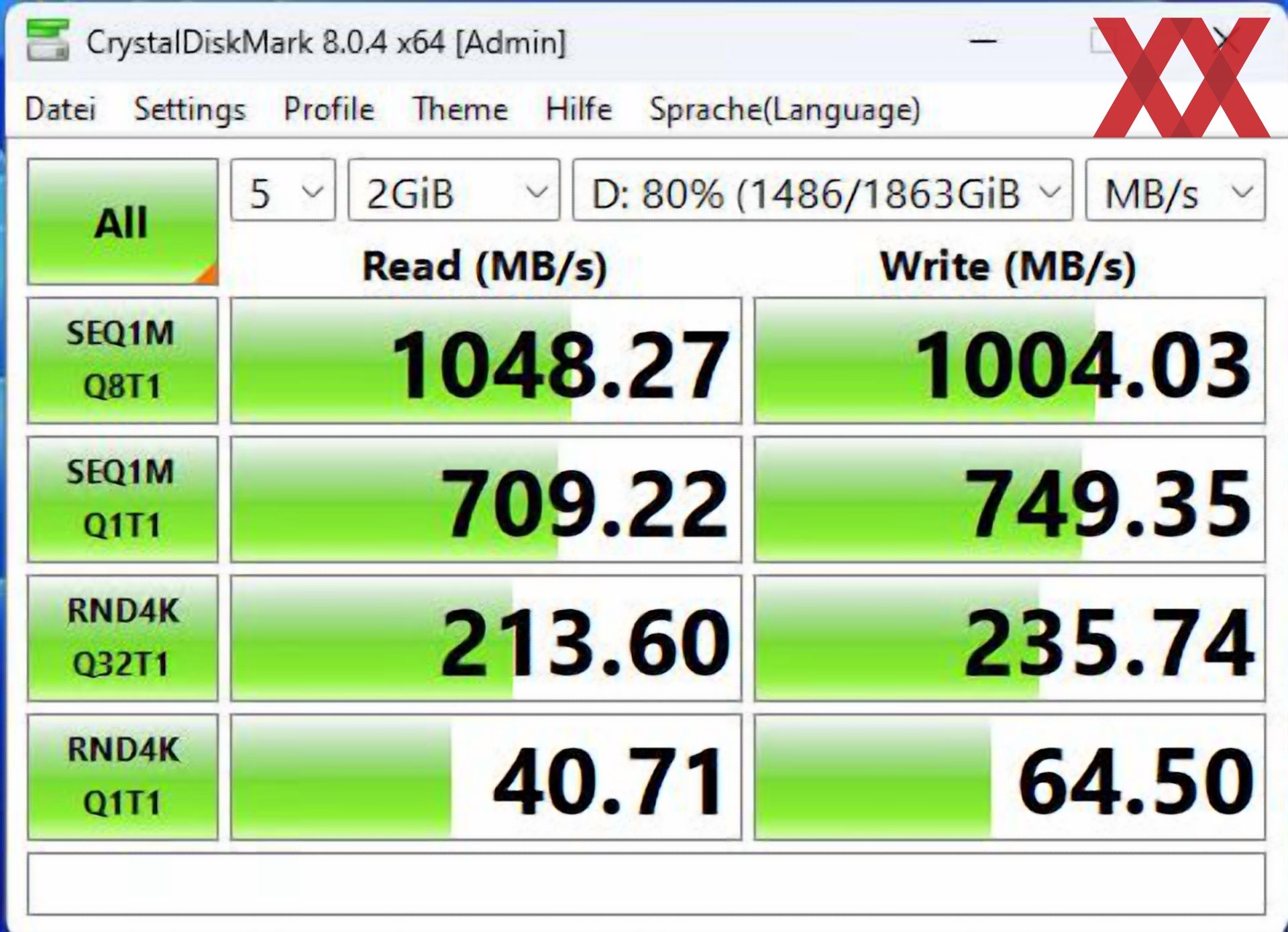 Zusätzlich zu unseren normalen Testdurchläufen haben wir dieses Mal auch die SSD im zu-80%-gefüllten Zustand gemessen. Es folgen die Ergebnisse.