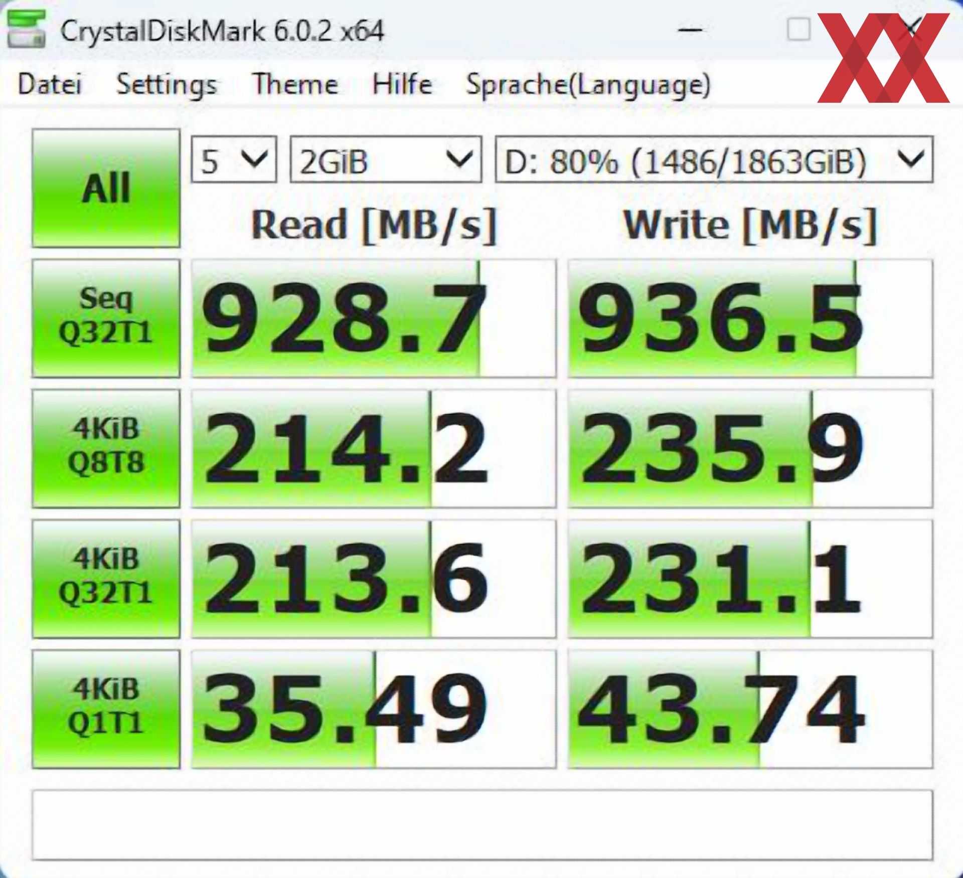 | Speicher | 4x Seagate BarraCuda Q5, 1TB, ZP1000CV30001 im RAID 0 |