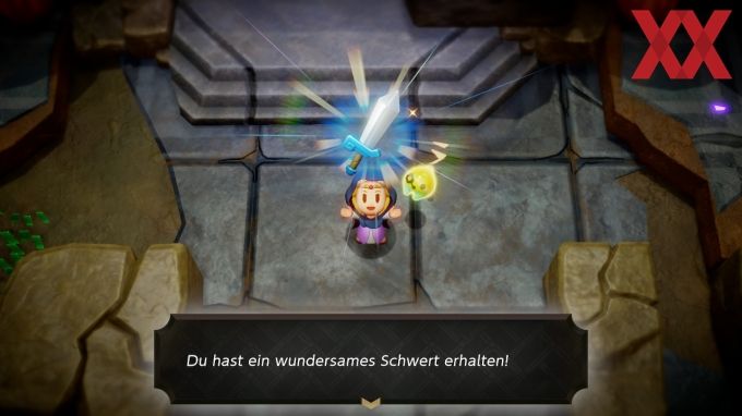 Nachdem wir den ersten Riss geschlossen haben, treffen wir auch auf den bösen Klon von Link. Beißt der nach kurzem Kampf ins Gras, erhalten wir sein Schwert und können uns fortan in eine Art Geister-Link verwandeln und endlich auch im Nahkampf austeilen. Dabei unterliegen wir jedoch einem zeitlichen Limit und müssen erst wieder Kraft sammeln, bevor die Fähigkeit reaktiviert werden kann. Später kommen weitere Fähigkeiten hinzu. Bis dahin können wir unsere Verwandlung und unser Schwert mit gefundenen Kristallen aufwerten.
