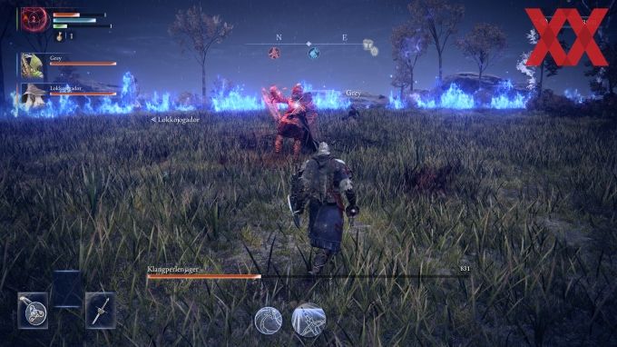 Nachdem wir per Spektralfalke über der Karte abgesprungen sind, können wir uns orientieren und die ersten Gegner niedermachen. So lässt es sich schnell leveln. Auf der Karte finden sich neben normalen Gegnern auch kleinere Bosse, Kirchen und Dungeons. Je nach Taktik gilt es nun, sich so schnell wie möglich in die gewünschte Richtung zu leveln und Ausrüstung zu finden. Das Ganze geschieht allerdings unter Zeitdruck. Nach viereinhalb Minuten beginnt sich ein Kreis um uns zu schließen und die Map verkleinert sich stark. Ist dieser Vorgang abgeschlossen, schließt sich Phase 2. Damit haben wir pro Tag insgesamt nur 14 Minuten Zeit, um uns umzusehen, zu kämpfen und vor dem tödlichen Regen in Sicherheit zu bringen.