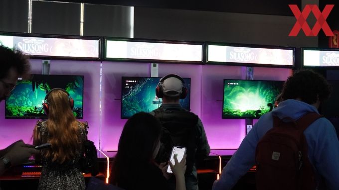 Die gesamte Booth hatte ein klares Highlight für viele Besucher. Es gab die Möglichkeit, das kommende Hollow Knight: Silksong anzuspielen. Schon seit der Ankündigung vor sechs Jahren wurde der Titel sehnlichst erwartet und zählt zu den am meisten gewünschten Titeln auf Steam. Mittlerweile wurde auch das Release-Datum bekannt gegeben. Es soll tatsächlich nur noch wenige Tage dauern, bevor das Spiel am 04. September 2025 erscheint.