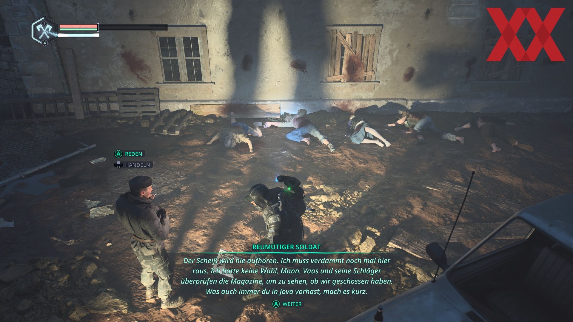 Genauso ging es uns mit dem kleinen Mädchen namens Rebecca, das sich in einem zerbombten Haus versteckt und uns erzählt, wie sie beobachten konnte, wie ihr kleiner Bruder und ihre Eltern von einer Bombe zerfetzt wurden. Bei unserem Weg durch die zerstörten Länder finden wir Anhänger beider Fraktionen und Beispiele für schreckliche Taten, die beide Kriegsparteien begangen haben. Nebenher arbeiten wir die Vergangenheit unsere Protagonisten auf und erfahren mehr über die Katastrophe, die für die Abschottung von Hadea gesorgt hat.