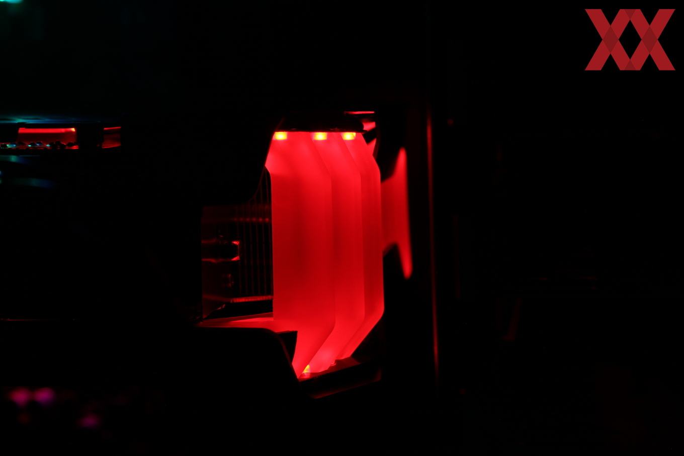 Auf Seiten der Stromversorgung gibt es gleich drei Buchsen für 8-Pin-PCI-Express-Stromstecker, womit die Karte theoretisch bis zu 450 W aus dem Netzteil saugen könnte. Gerade Profi-Overclocker dürfte das freuen. Ebenfalls mit von der Partie ist eine auffällige RGB-Beleuchtung, auf der Dual-Slot-Blende gibt es drei DisplayPort-Ausgänge und einen HDMI-Port.