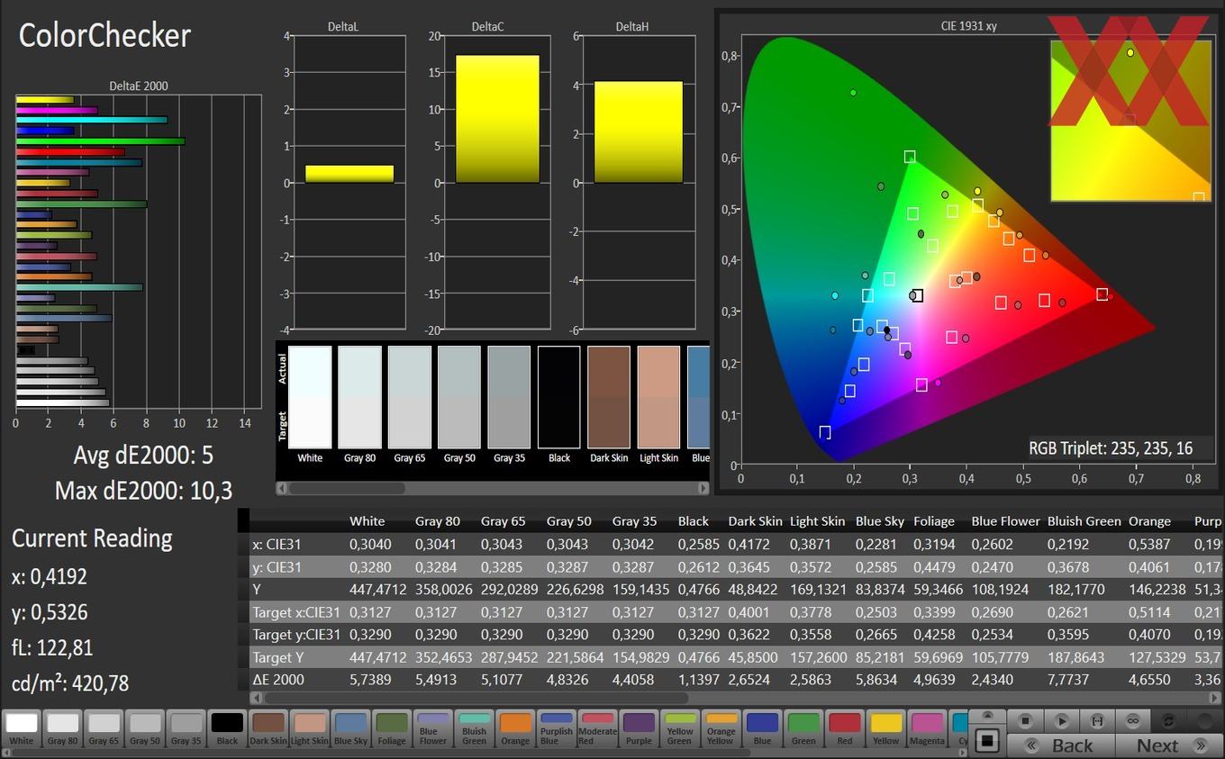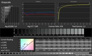 Das genutzte IPS-Panel bietet eine gute Bildqualität und ausreichend Leuchtkraft für eine ansprechende SDR-Wiedergabe. Ebenso wird eine überzeugende Farbraum-Abdeckung geboten. Etwas Luft nach oben sehen wir hingegen bei den DeltaE-Werten und dem Weißpunkt. Spieler wird das aber weniger stören.