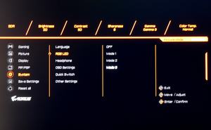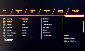 Aber auch die generelle Darstellungs-Qualität kann überzeugen, denn das Panel ist hell und kontrastreich abgestimmt. Der Gigabyte Aorus FI27Q-X bietet großzügige Farbräume und deckt AdobeRGB vollständig ab. Einzig beim Weißpunkt lässt Aorus etwas Potential liegen.