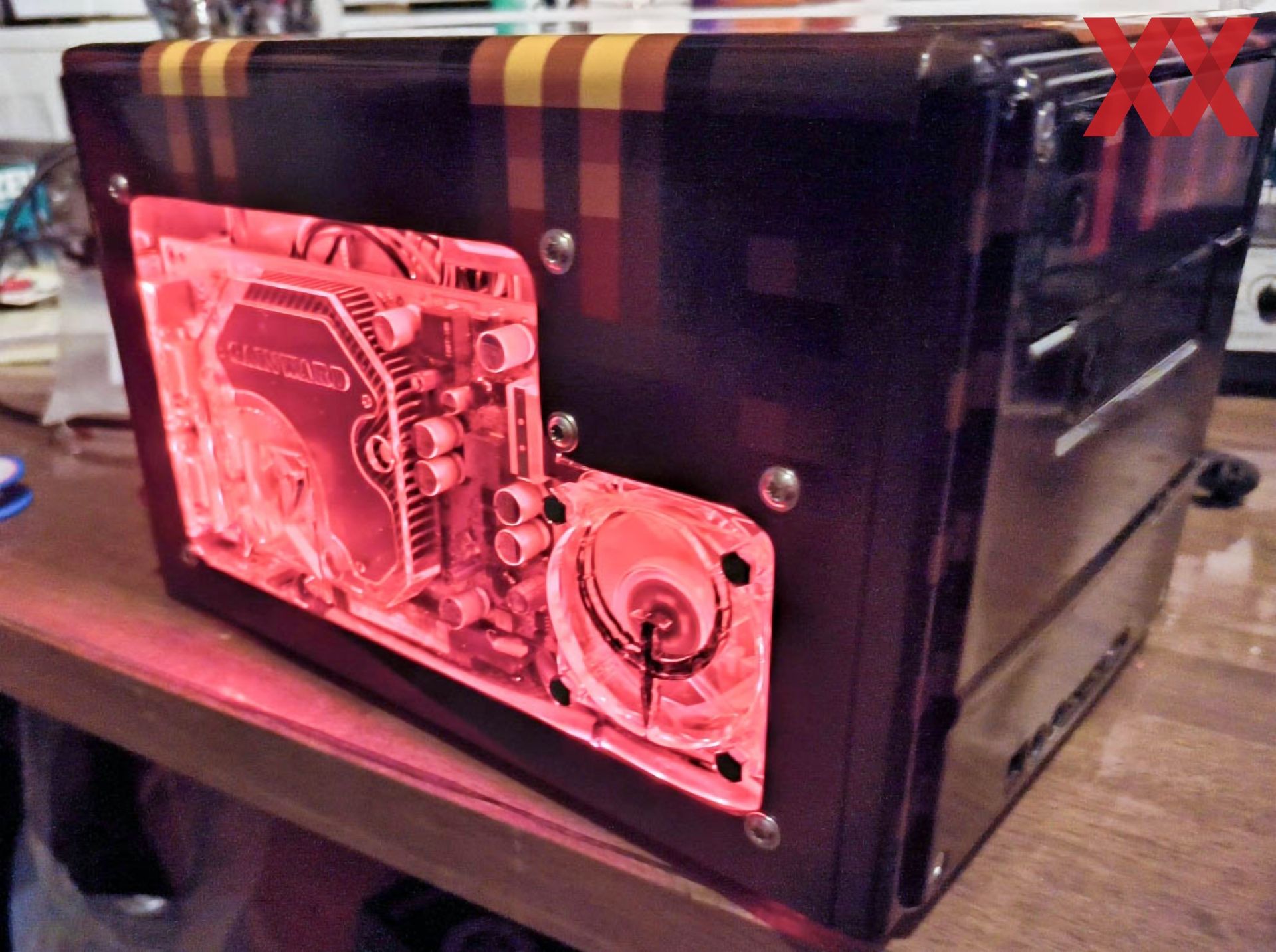 Das Design des Gehäuses wurde von Binz angepasst und soll einer Munition Kiste aus dem Spiel Quake 1 entsprechen. Durch das bereits angesprochene nachträglich eingearbeitete Fenster wird ein Blick in das innere bzw. in diesem Fall auf die Grafikkarte ermöglicht. Für den hitzigen Innenraum sorgt ein kleiner roter Lüfter mit Quake-Lüfter Gitter für das Extra an frischer Luft.