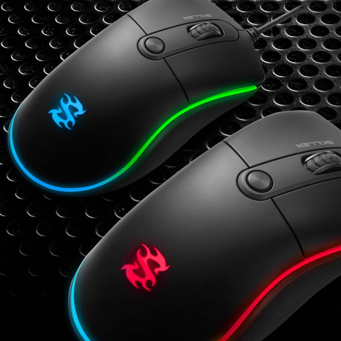 Auf aufwendige Features wie Gewichtssystem, austauschbare Mauselemente und dergleichen mehr hat Sharkoon bei der Skiller SGM2 konsequent verzichtet. Die schlicht gestaltete Maus wurde als ergonomische Rechtshändermaus gestaltet. Für Komfort sollen dabei sowohl die gewölbte Form des Mausrückens als auch die Gummielemente an den Außenseiten sorgen. Zusätzlich zu den beiden Haupttasten und dem Mausrad stehen zwei Daumentasten und ein DPI-Wahlschalter zur Verfügung. Ab Werk können damit die vier Auflösungsstufen 400, 1.200, 3.200 und 6.400 DPI ausgewählt werden. Die Beleuchtungsfarbe des Skiller-Logos signalisiert, welche Stufe gerade aktiv ist.