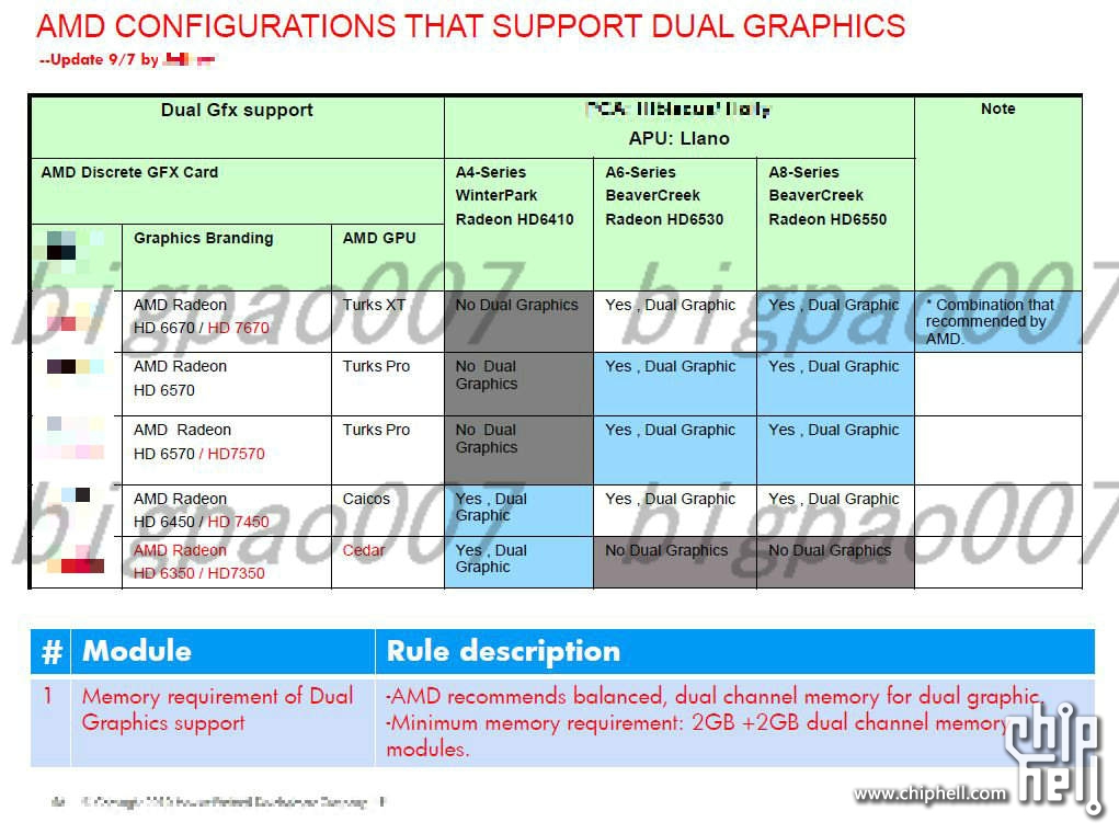 Während der letzten Tage und Wochen haben sich die Gerüchte rund um AMDs kommende Grafikkarten weiter verdichtet. Nachdem wir erst zum Wochenende hin einen vermeintlich echten Terminplan der US-Amerikanischen Grafikschmiede aufzeigen und damit wohl auch einen baldigen Start der AMD Radeon HD 7870 und Radeon HD 7850 aufzeigen konnten, kamen nun weitere Details zur nächsten Grafikkarten-Generation ans Tageslicht. So gibt eine neue Folie, die auch Informationen zur Kompatibilität der "Llano"-APUs aufzeigt, Hinweise auf die kommenden Low-End- und Mid-Range-Karten. Demnach sollen die kleineren Ableger der heiß erwarteten Radeon-HD-7000-Familie alte Bekannte sein, die einfach unter neuem Namen ins Rennen geschickt werden sollen. Demnach sollen Chips wie "Cedar", "Caicos" und "Turks" im nächsten Jahr neu aufleben dürfen und als Radeon HD 7350, 7450, 7570 und Radeon HD 7670 an den Start gehen.