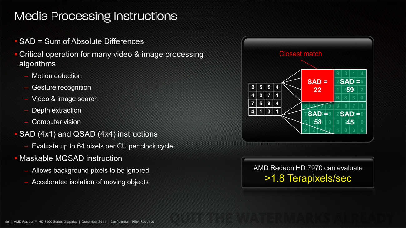 Offenbar ist die AMD Radeon HD 7970 in der Lage bis zu 1,8 Terapixel pro Sekunde zu berechnen, was besonders in der Video-Bearbeitung zum Tragen kommen wird.