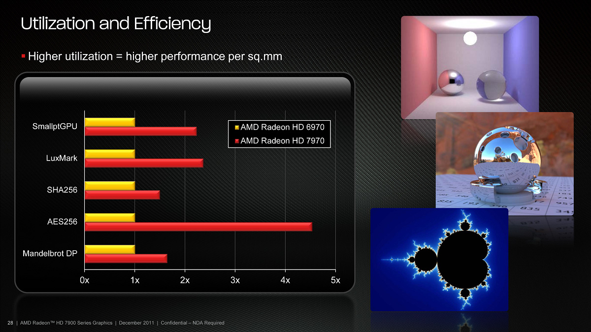 Schon bekannt ist, dass AMD die "Southern Islands"-Generation auf GPU-Compute ausgelegt hat. Obige Benchmarks sollen dies noch einmal unterstreichen.