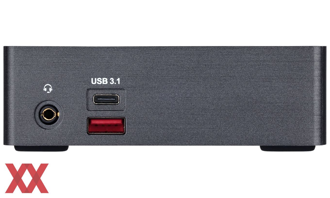 Anschlussseitig gibt es an der Front einen modernen USB-3.1-Anschluss nach Typ-C, einen zusätzlichen Typ-A-Port sowie zwei 3,5-mm-Klinkenbuchsen für den Anschluss eines Headsets. Auf der Rückseite warten ein HDMI-Port und ein mini-DisplayPort-Anschluss auf ihre Verwendung, zwei weitere USB-3.1-Schnittstellen gibt es aber ebenso wie eine Gigabit-LAN-Buchse und den Anschluss für das externe 65-W-Netzteil. Natürlich ist auch ein integriertes Bluetooth- und WLAN-Modul vorhanden.