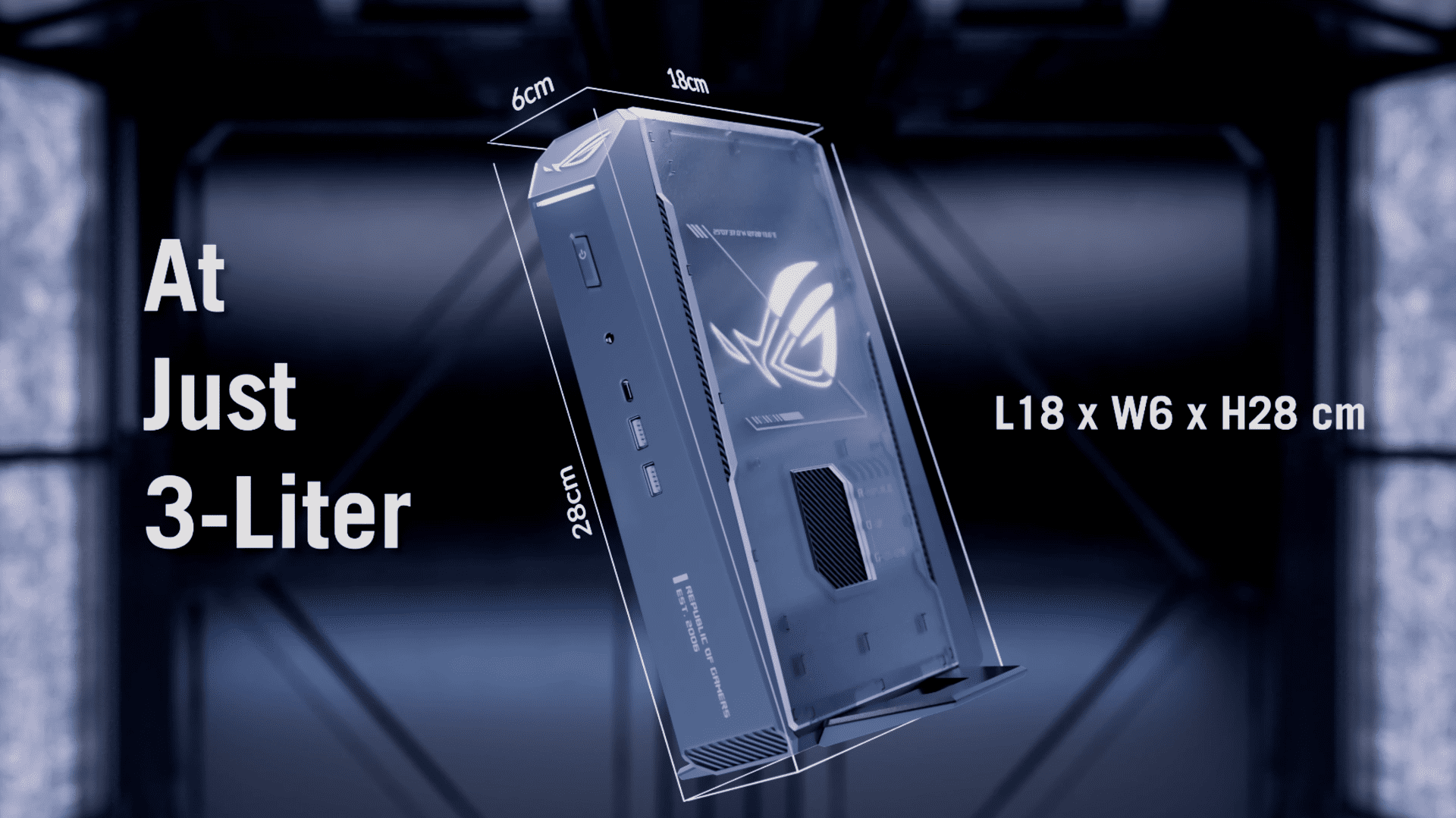 Das Gehäuse hat ein Volumen von drei Litern und kommt auf Abmessungen von 180 x 60 x 280 mm. Im Inneren arbeitet ein AMD Ryzen 9 9955HX3D mit zusätzlichem 3D V-Cache. Es handelt sich um den schnellsten Gaming-Prozessor am Markt, der in Notebooks oder eben kompakten Gaming-Systemen eingesetzt werden kann. Kombiniert wird der Prozessor mit einer GeForce-RTX-5070-Laptop-GPU.