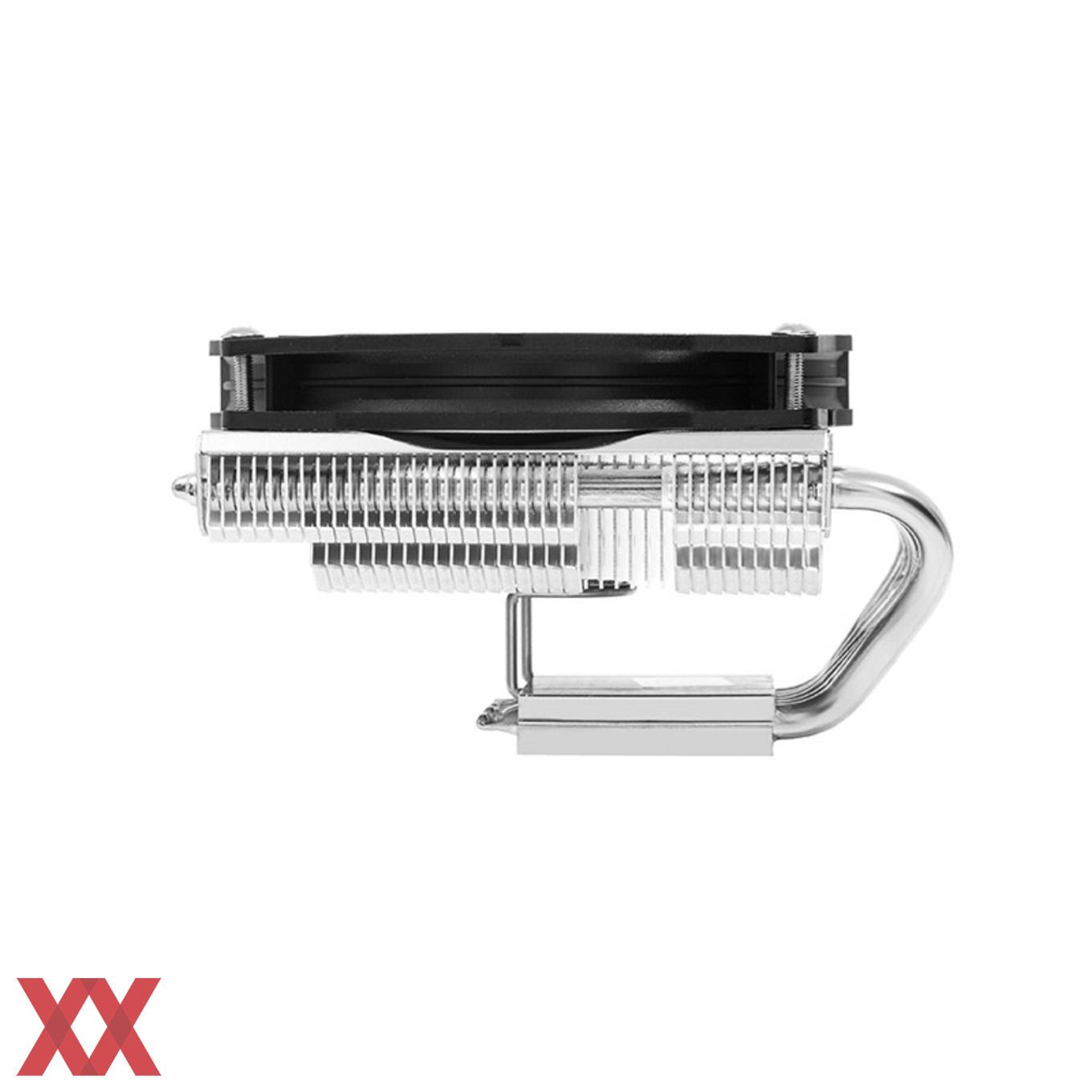 Der Hersteller hat den Kühler so angepasst, dass zwischen Bodenplatte und Kühlkörper ein höherer Abstand bleibt. Das kann auf manchen Mainboards die Kompatibilität erhöhen. So soll der AXP-100H Muscle jetzt trotz der hohen Spannungswandler-Kühler auf das ASUS ROG Maximus VIII Impact passen. Durch die Anpasssung legt der Kühler allerdings insgesamt etwas an Höhe zu und wächst im Vergleich zum Vorgänger um etwa 7 mm. Trotzdem fällt die Kühlerhöhe mit 51 mm (bzw. 65 mm inklusive Lüfter) nach wie vor vergleichsweise niedrig aus. Auch der AXP-100H Muscle bietet sich entsprechend für HTPC-Systeme oder für Gehäuse mit eingeschränkter Kühlerkompatibilität an. Durch sein "Down Draft"-Layout kühlt er dabei nicht nur den Prozessor, sondern auch umliegende Bauteile auf dem Mainboard. Dabei arbeitet der mitgelieferte 100 mm Lüfter TY 100 BW mit 900 bis 2.500 U/min.