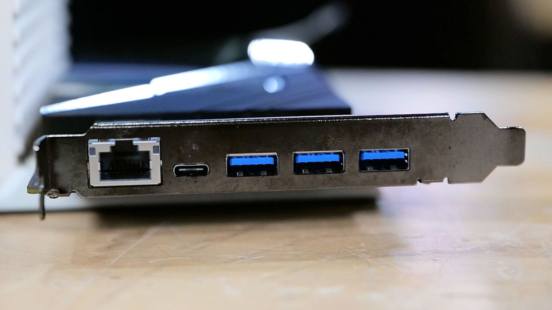In der Praxis vorgestellt wurde das X670-XPansion-Kit in einem YouTube-Video von Level1Techs. Als Mainboard wurde von ASRock das B650 LiveMixer verwendet, das größtenteils in orange, gelben Klecksen und weißer Schrift ein ungewöhnliches Design mitbringt. Die Erweiterungskarte selbst benötigt als Anbindung lediglich das PCIe-4.0-x4-Interface, also exakt so, wie auch die beiden Promontory21-Chips auf einem X670-Mainboards mit einander verbunden sind. Auf der Erweiterungskarte selbst, lassen sich zwei M.2-M-Key-Module verbauen, die dann jeweils mit bis zu PCIe 4.0 x4 arbeiten. Ein Kühler ist auch mit dabei. Ergänzend kommen auch noch zwei SATA-6GBit/s-Buchsen hinzu. An der Slot-Blende wurden von ASRock drei USB-3.2-Gen2-Ports in der Typ-A-Ausührung sowie einmal Typ-C. Auch ein RJ45-Ethernet-Port ist mit verbaut worden. Dieser kann laut ASRock Daten bis 10 GBit/s schieben.