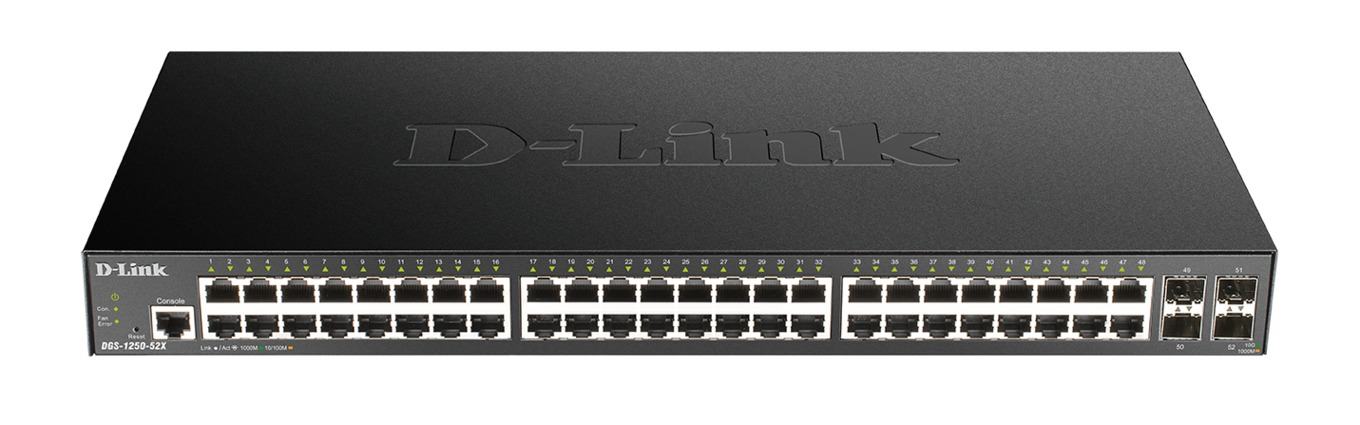 Die Switches der DGS-1250-Serie sind vom Hersteller mit vier 10G Highspeed SFP+-Uplink-Ports ausgestattet worden. Bei den vier SFP+-Ports ist es laut D-Link möglich, die Module aufgrund der Hot-Plug-Funktionalität im laufenden Betrieb zu wechseln. Die Modelle besitzen wahlweise 24 oder 48 10/100/1000BASE-T Ports und sind zudem als PoE-Variante verfügbar. Der Switch kann gemäß dem IEEE-802.3af/at-Standard angeschlossene Geräte mit bis zu 370 W via PoE versorgen. Die neuen Switches aus dem Hause D-Link können entweder durch ein webbasiertes User-Interface, dem D-Link Network-Assistant, über ein Command-Line-Interface oder über den dedizierten Konsolen-Port konfiguriert und verwaltet werden.