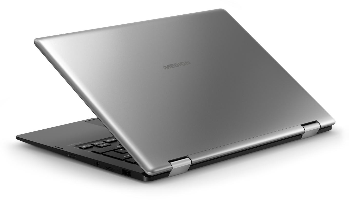 Das Medion E2292 wird hingegen als Convertible verkauft. Der Bildschirm misst 11,6 Zoll in der Diagonalen und verfügt zusätzlich über eine Touch-Funktion. Hier kommt mit dem Intel Celeron N4100 außerdem eine deutlich leistungsschwächere CPU zum Einsatz und auch beim Arbeitsspeicher hat der Nutzer mit 4 GB weniger Kapazität zur Verfügung. Der interne Speicher wird auf 128 GB beziffert und kann nicht erweitert werden. Laut Medion arbeitet das E2292 komplett lüfterlos und erzeugt damit während dem Betrieb auch keinen Lärm.