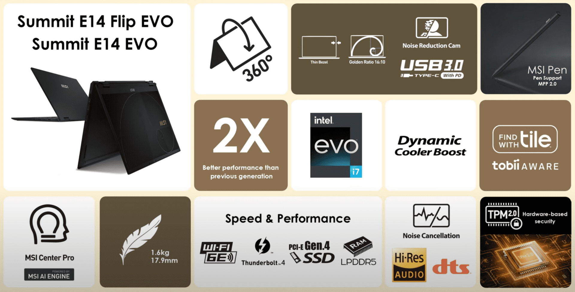 Die Basismodelle sollen ab 1.299 Euro für das MSI Summit E14 Evo und ab 1.649 Euro für das MSI Summit E14 Flip Evo starten.