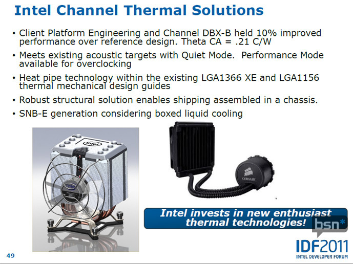 Üblicherweise bundeln AMD und Intel ihre Prozessoren mit Luftkühlern. Deren Kühlleistung ist in der Regel eher knapp bemessen, beim Übertakten stoßen die Boxed-Kühler meist rasch an ihre Grenzen. Die neuen High-End-Prozessoren Sandy Bridge E, die im vierten Quartal 2011 auf den Markt kommen sollen, könnten jedoch zusammen mit einer Komplettwasserkühlung ausgeliefert werden.