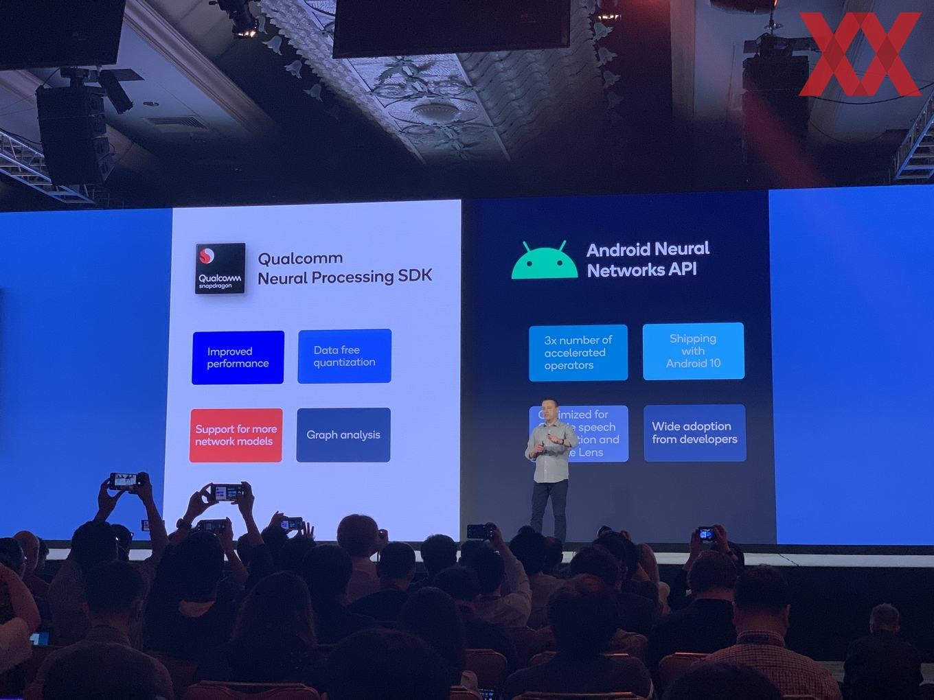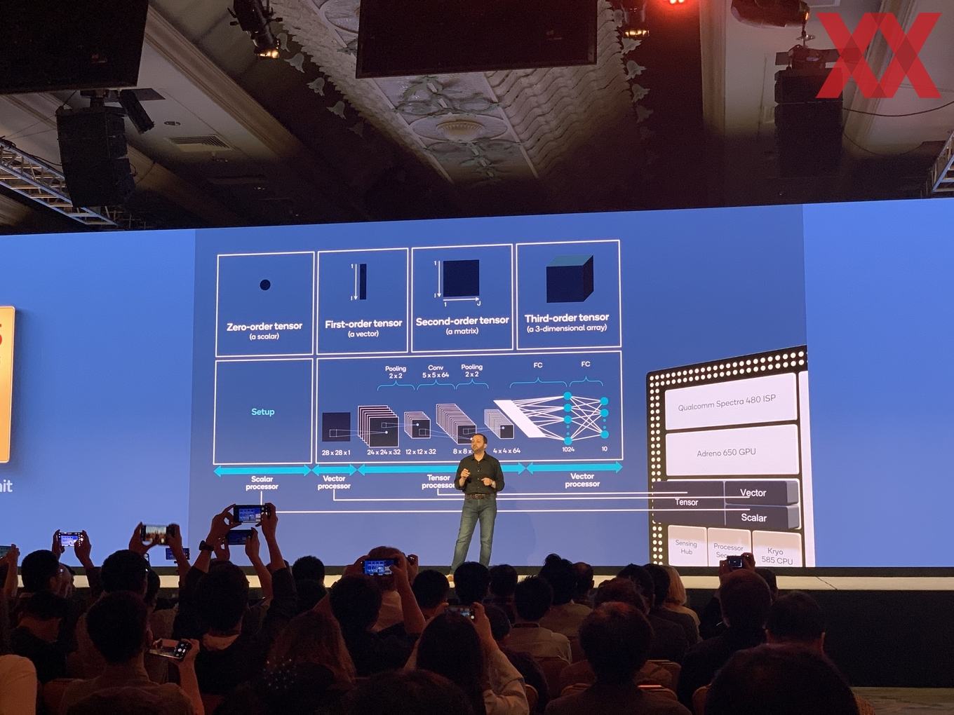 Man zeigte die Fähigkeiten in mehreren Demos, die schon beeindruckend waren: Ein Live-Diktat in Englisch wurde nicht nur gleich erkannt, sondern konnte beispielsweise auch gleichzeitig in chinesische Sprache übersetzt werden - und dann sogar als Sprache ausgegeben werden. Der StarTrek Communicator kommt also näher - und das alles ohne Cloud im Hintergrund, sondern bei voller Berechnung über das Smartphone über Deep Learning Algorithmen. Qualcomm unterstützt dabei das Neural Processing SDK in der 5. Generation oder die Android Neural Networks API, man lässt aber jetzt auch User Defined Operators zu (zusätzlich zu den ca. 160 von Qualcomm). Tensor Flow Lite kann direkt auf Hexagon NN Direct laufen ohne eine Runtime - und auch andere Solution Provider möchte man erlauben.