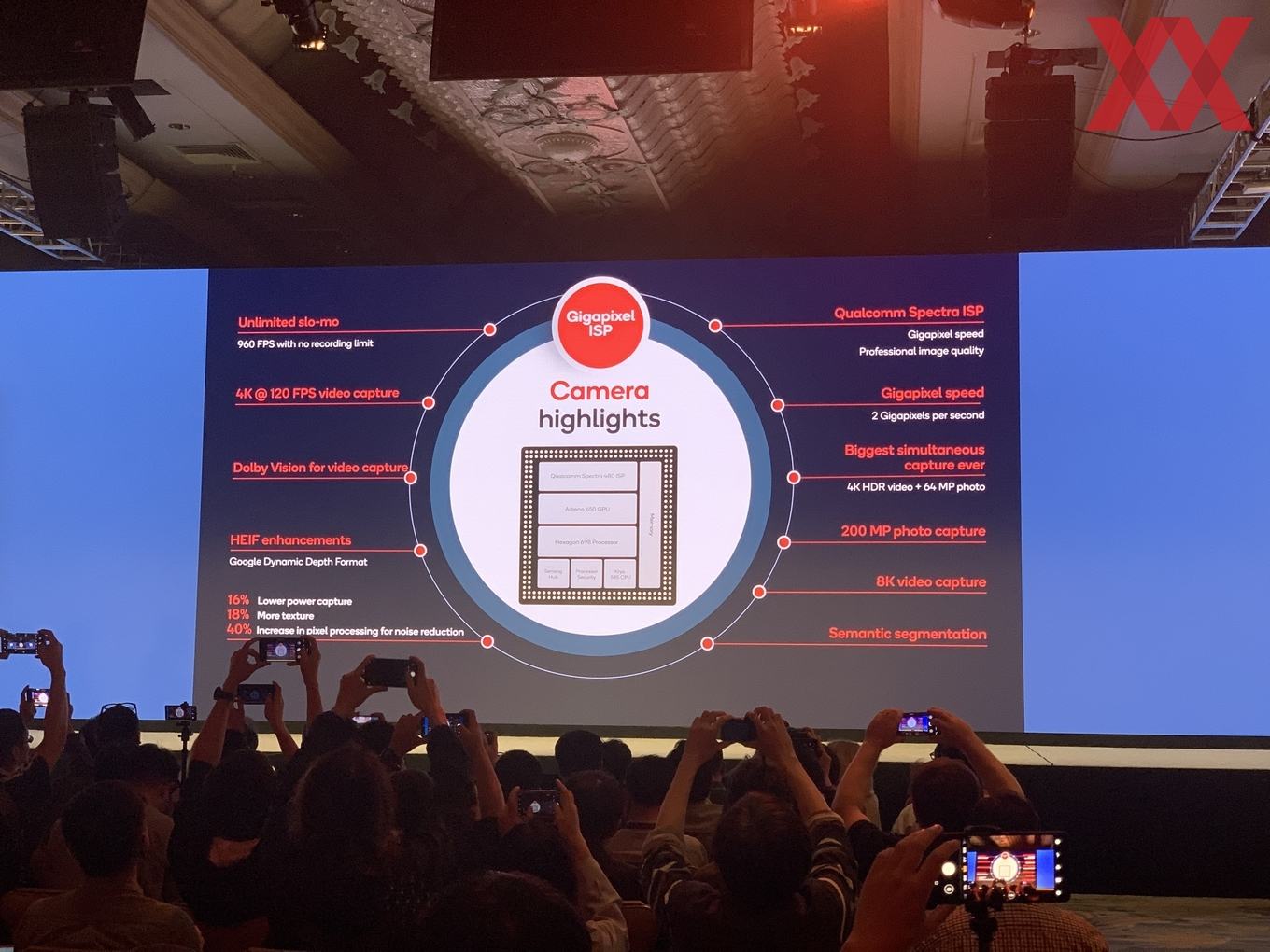 Qualcomms Spectra 480 CV-ISP kann nun insgesamt 2 Gigapixel pro Sekunde verarbeiten - oder umgekehrt 64 Megapixel in 30fps aufnehmen. Mit geeigneter Kamera ist es somit möglich, 8K-Videos mit 33 Megapixel bei 30fps zu unterstützen - was Qualcomm auch in diversen Demos zeigte. Allerdings sind auch andere Einsatzmöglichkeiten denkbar, beispielsweise 4K bei 120 fps für 120 Hz Displays oder eine 4-fache Slow-Motion bei 4K - oder beispielsweise ein 720p-Video in 960fps-Slow-Motion.