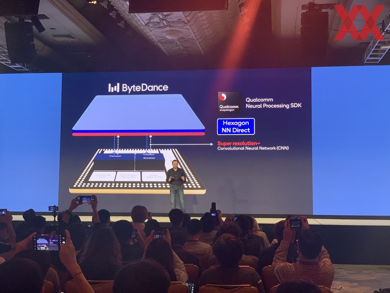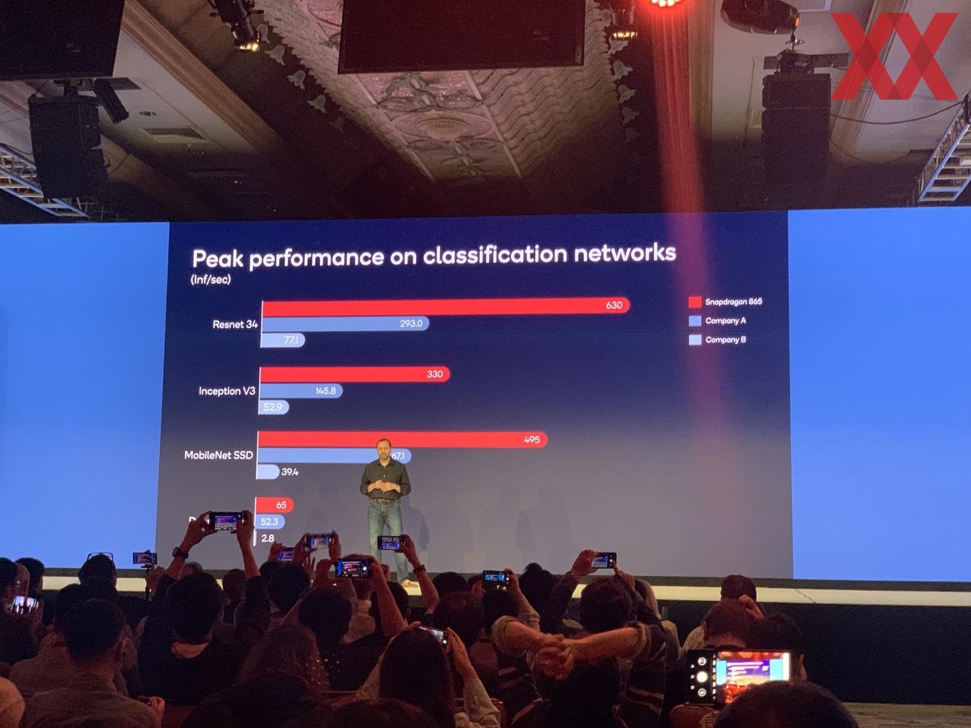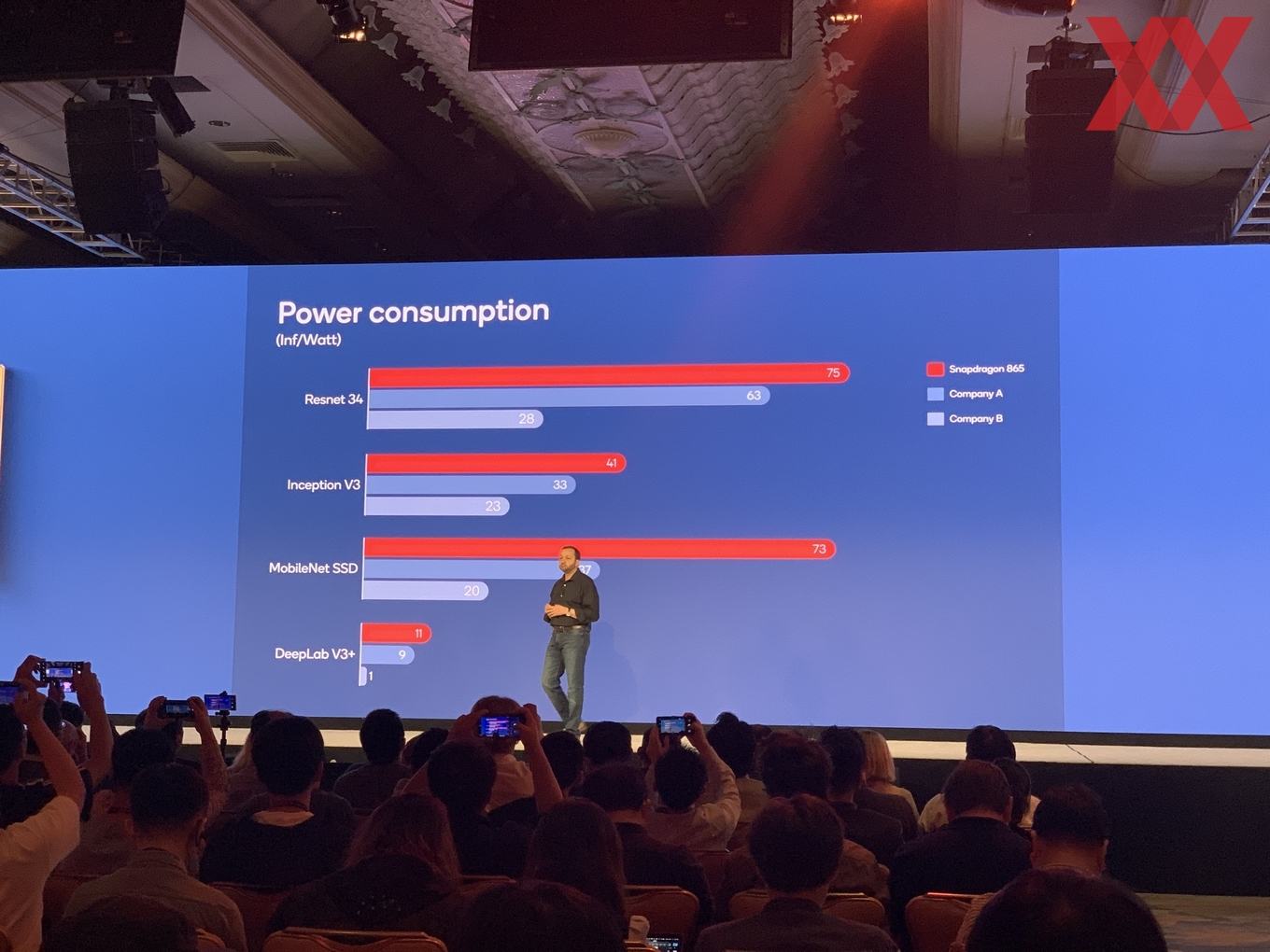 Stark verbessert hat Qualcomm die Hexagon-Einheit des SoC, die für die AI-Funktionen zuständig ist. Ziad Ashgar, der VP Product Marketing & AI bei Qualcomm, gab in der Keynote an, dass die Geschwindigkeit zum Vorgänger verdoppelt wurde. Insgesamt erreicht der Chip bei einer um 35 % geringeren Leistungsaufnahme 15 TOPS, der Chip unterstützt LPDDR5 mit 2.750 MHz, aber Hersteller könnten auch zum preiswerteren LPDDR4 greifen, wenn gewünscht. Qualcomm spendiert der AI-Sektion 3 MB System Cache zusätzlich.