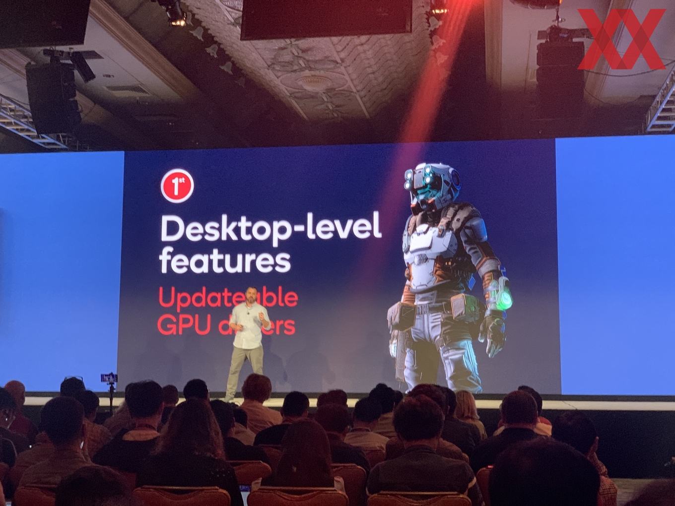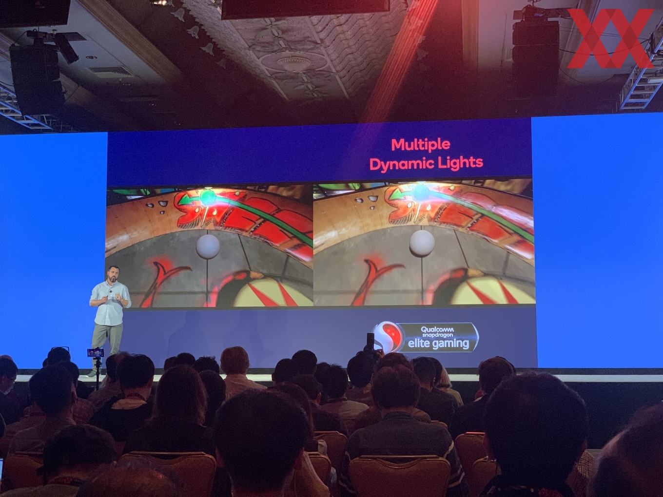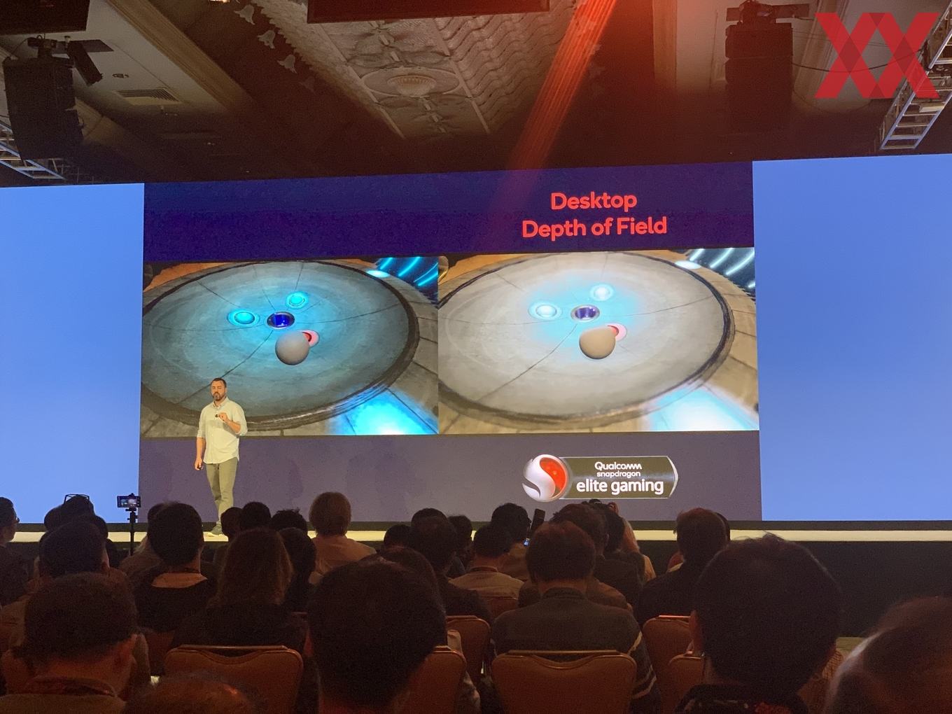 Zur Demonstration der Gaming-Fähigkeiten hatte Qualcomm den Profi-Gamer Myst auf die Bühne geholt - weil eben der Adreno auch Desktop-ähnliche Gaming-Features mitbringen wird. Beispielsweise unterstützt Qualcomm jetzt auch unter Android das Updaten der Treiber, wie man es vom Desktop kennt - zum einen um neue Spiele zu unterstützen, aber auch Optimierungen liefern zu können. Das soll dem Gamer die Möglichkeiten geben, sein Smartphone aktuell zu halten, auch wenn nicht gleich eine neue Android-Variante bereit steht. Weiterhin kann an der Optik zukünftiger Games gefeilt werden: Vom Desktop bekannte Funktionen wie Motion Blur, Multiple Dynamic Lights and Shadows und viele mehr werden in kommenden Spielen unterstützt.