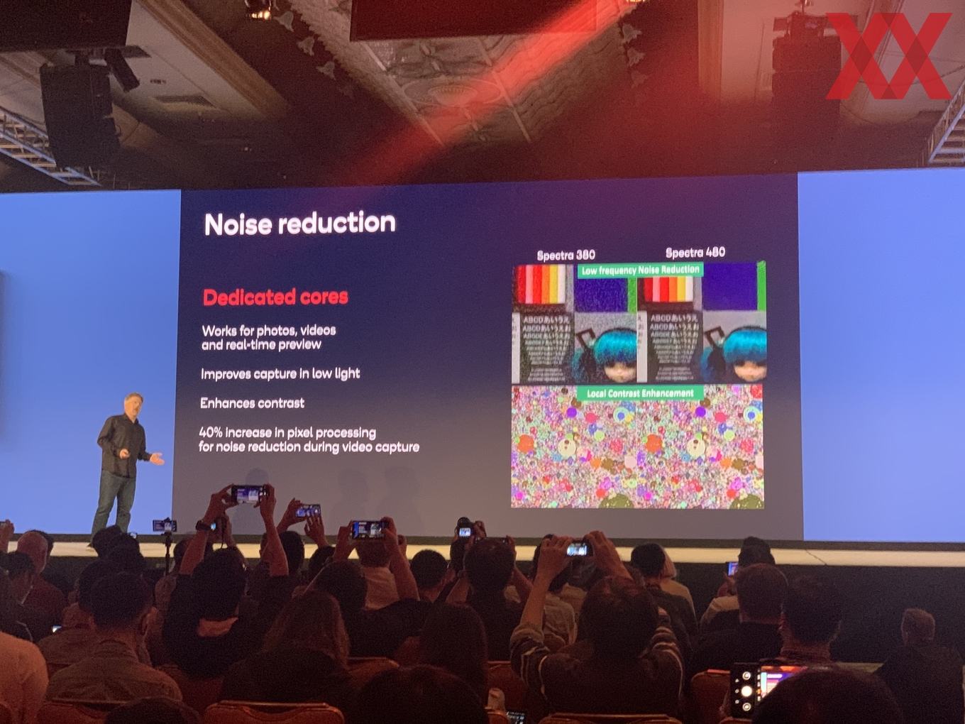 Qualcomm hat den Spectra-Teil des SoCs aber noch mit anderen Funktionen aufgeblasen, beispielsweise wird das Dateiformat HEIF nun auch mit einem Depth Map, Alpha Mask und vielen anderen Informationen versehen, sodass beispielsweise unterschiedliche Bokeh-Effekte in einem Bild nicht mehr in separaten Dateien abgespeichert werden müssen. Dies und die sowieso schon 50% geringere Dateigröße des HEIF-Formates sparen Speicherplatz auf dem Smartphone und erlauben neue Anwendungen. Die 5th-Generation-AI-Engine des Spectra 480 CV-ISP unterstützt zudem Segmentation (z.B. für Hintergrundveränderungen), Semantic Segmentation (für Bildverbesserungen) und kleine andere Rafinessen, beispielsweise einen AI-basierten Smart Optical Zoom, der mehrere Kameras zusammen "smooth" verbindet und keine Sprünge beim Übergang der Kameras im Display zeigt.