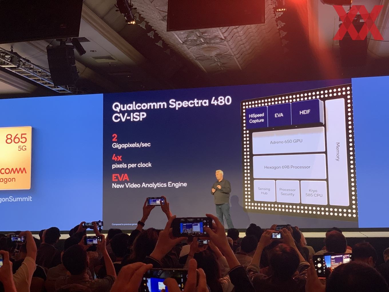 - und dann natürlich dem eigentlichen SoC, der wiederum aus Qualcomm's Spectra 480 CV-ISP, der Adreno 650 GPU, dem Kryo 585 CPU, dem Hexagon 698 AI Prozessor, einem Sensing Hub und einer optionalen Low Power Camera besteht.